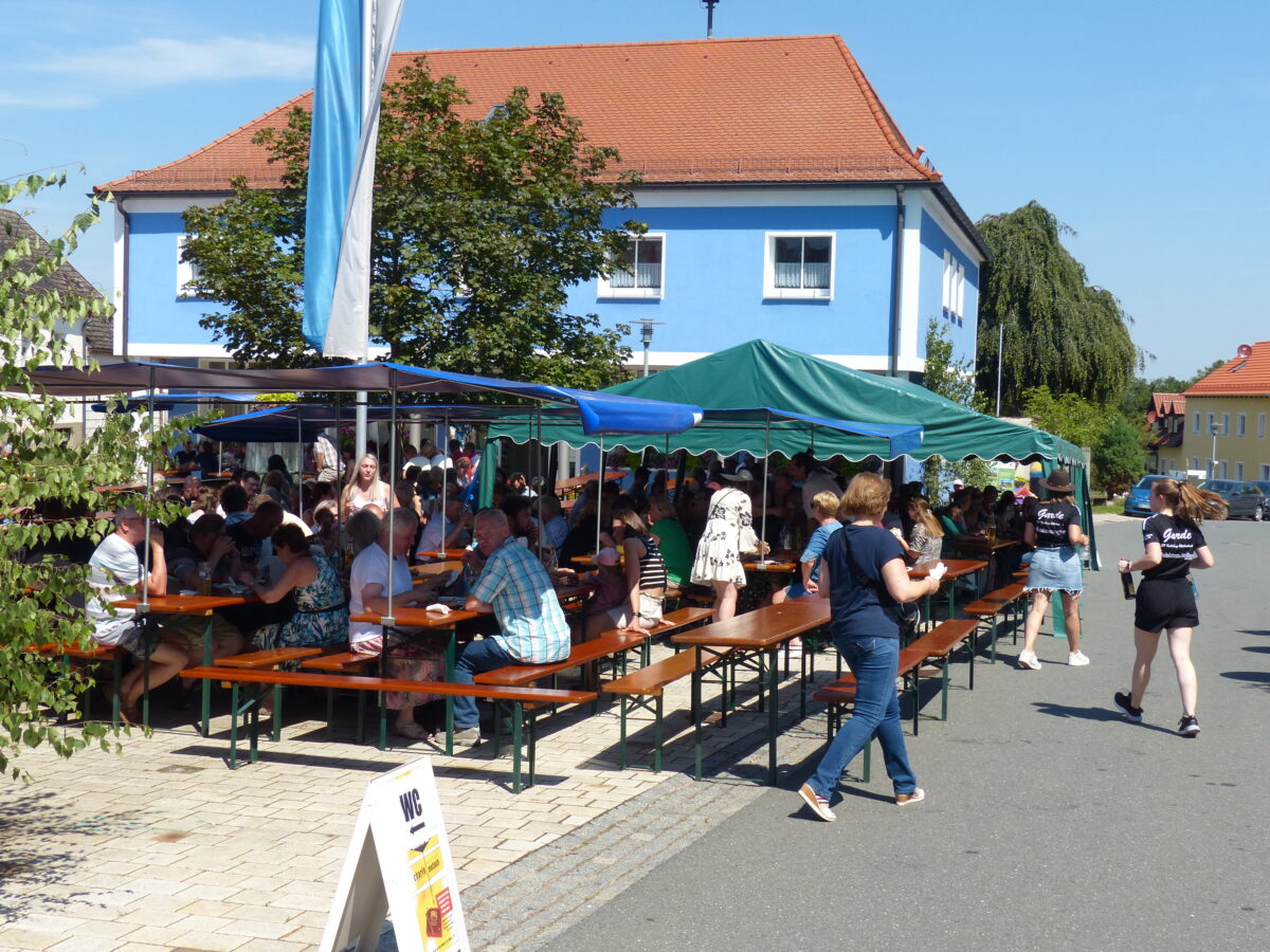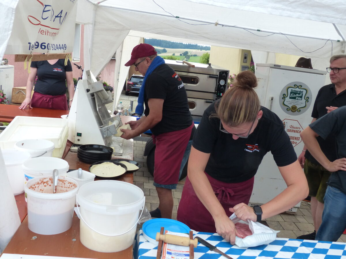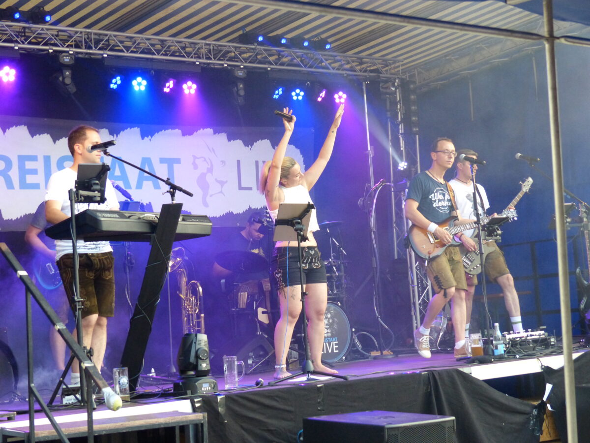 Nachdem nach dem Mittagessen die Temperaturen immer mehr in die Höhe geklettert waren, zogen es viele Besucher vor, einige Nachmittagsstunden zu Hause zu verbringen. Pünktlich zum Auftritt von „FREISTAAT LIVE“ füllte sich der Festplatz zusehends. Ob Getränke oder das kulinarische Angebot, unter anderem frische Pizza, gingen weg wie die warmen Semmeln. Grillfleisch und Bratwürste gingen an beiden Tagen zahlreich über den Tresen.