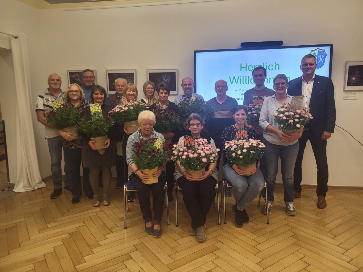 Die Ehrung der Teilnehmer erfolgte in drei Gruppen, beginnend mit denjenigen, die die Kriterien überdurchschnittlich erfüllten, bis hin zu den naturnahen Hausgärten. Die Preise variierten von Maxhütter Groschen bis hin zu einem großen Blumenstock.