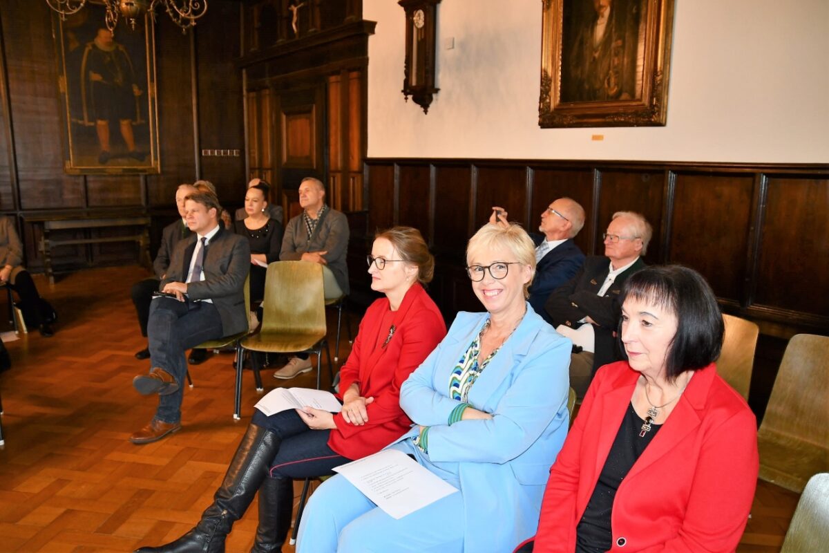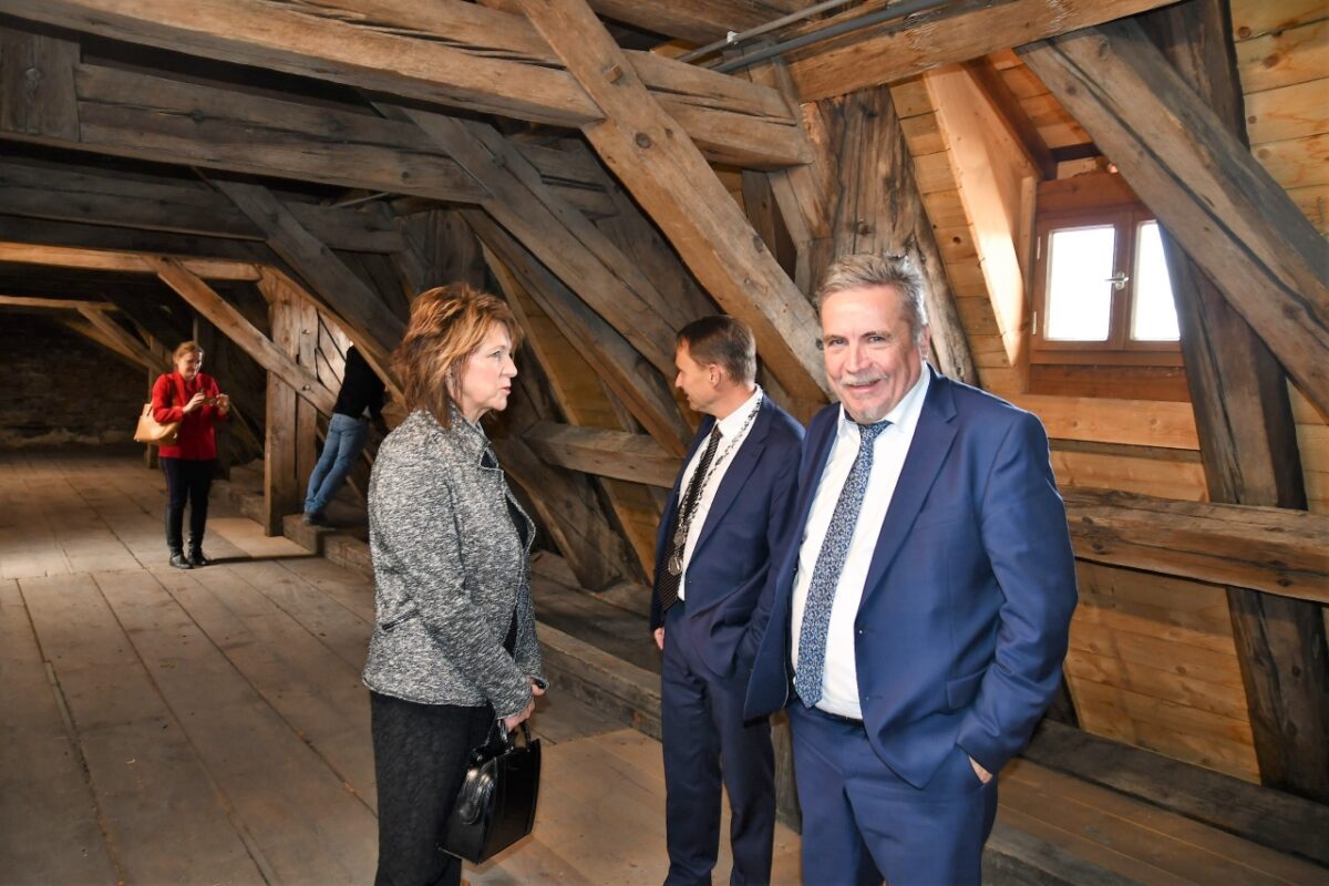 Unterhaltsam und fast schon mystisch lud dann Archivarin Petra Vorsatz auf eine Reise zu den Geheimnissen des Weidener Alten Rathauses ein. Sie erzählte die Geschichte von 1536 wo Klaus Füßlein die Geister des Weidener Rates belauschte und dann den Großbrand von Weiden hilflos beobachten musste. OB Jens Meyer lud dann die Delegation mit Weidener Stadträten und Stadträtinnen ein, den restaurierten Dachstuhl des Alten Rathauses zu besuchen. Mit einem gemeinsamen Mittagessen im Restaurant Alfa klang dieser Festakt aus und herzlich wurde sich von der Delegation aus Annaberg-Buchholz verabschiedet.