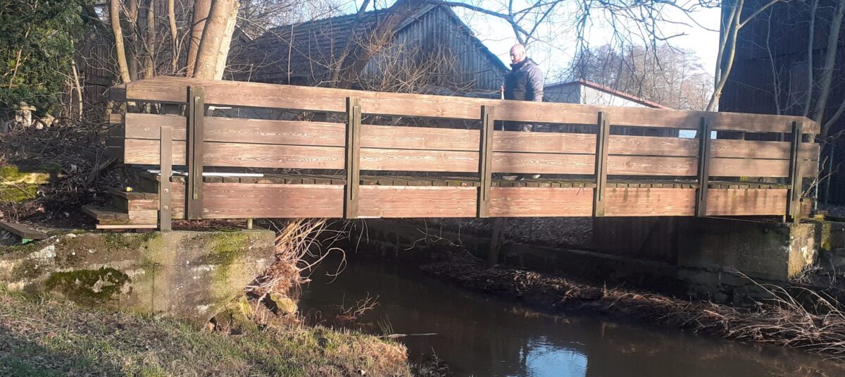 In Schlammersdorf zeigt sich gerade, was Gemeinschaft alles bewegen kann. Eine ehrenamtliche Gruppe hat es sich zur Aufgabe gemacht, einen alten Fußgängersteg über die Creußen zu sanieren. Das Ergebnis kann sich sehen lassen: Der Steg steht nun wieder wie neu da.