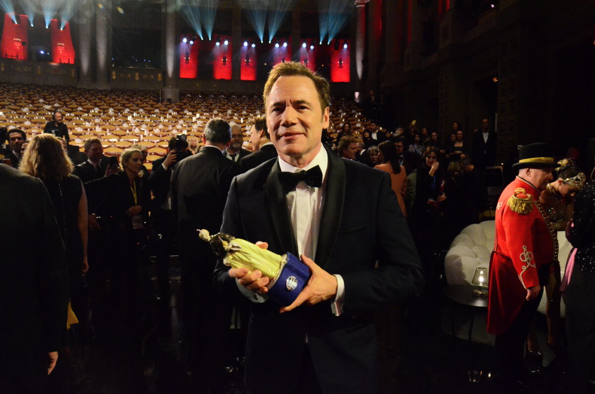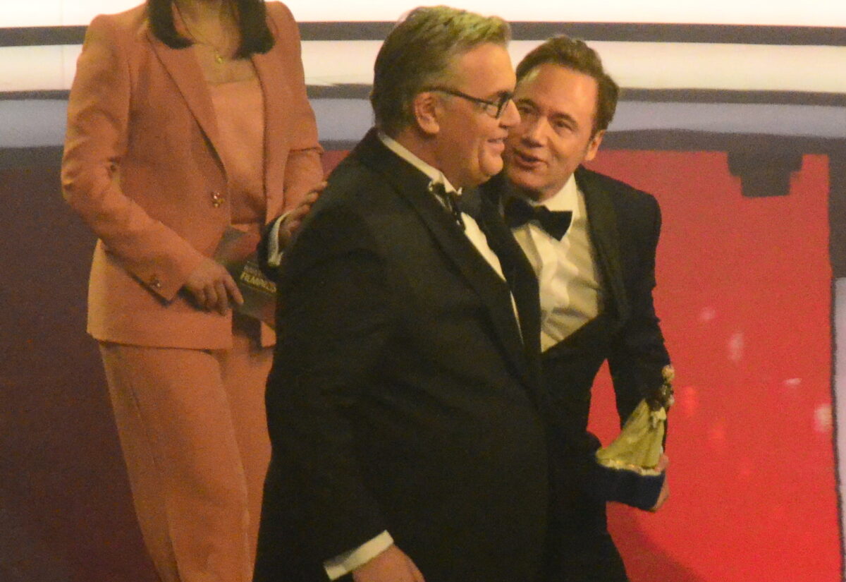 Michael „Bully“ Herbig steht an diesem Abend im Mittelpunkt. Sein Film “Das Kanu des Manitu” wird als erfolgreichster Film ausgezeichnet und gefeiert. Den „Pierrot“, die Porzellanfigur des Bayerischen Filmpreises, überreicht ihm kein Geringerer als Kollege Hape Kerkeling. Bully bedankt sich. “Film ist Teamarbeit. Ohne Team geht’s nicht“, sagt er.