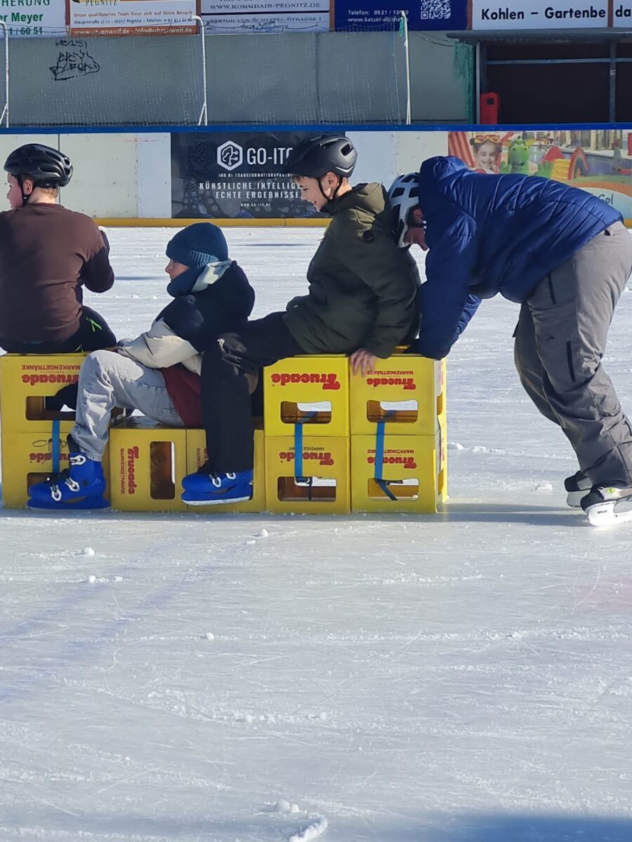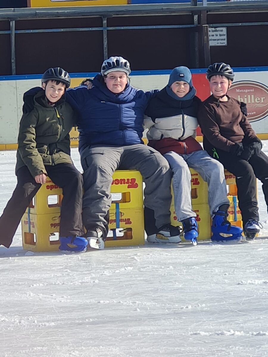 Schon die Busfahrt war von fröhlicher Stimmung geprägt. Die Vorfreude auf das Schlittschuhlaufen war groß, und das schöne Wetter sorgte zusätzlich für beste Laune. Im Eisstadion angekommen, schnürten die Teilnehmer rasch ihre Schlittschuhe und wagten sich aufs Eis. Während einige bereits sicher ihre Runden drehten, tasteten sich andere vorsichtig an die glatte Fläche heran.