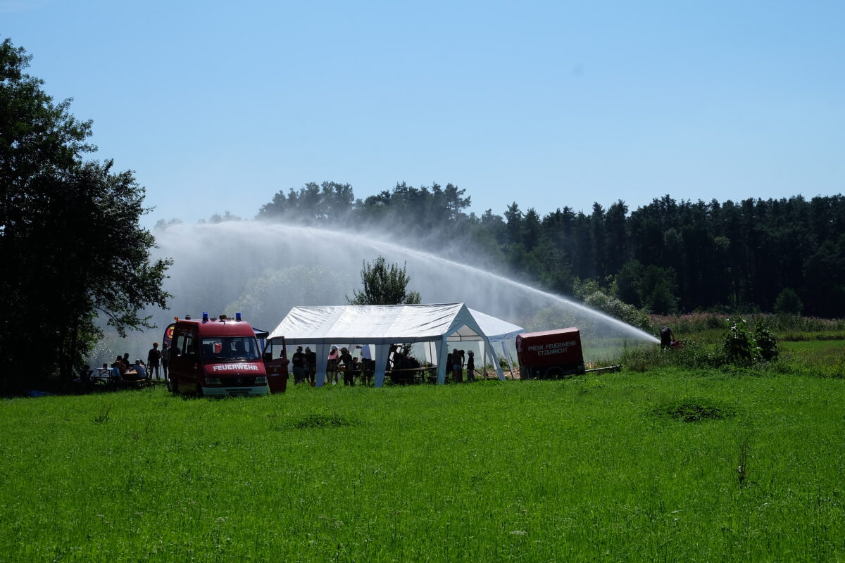 Die 15 Helfer und Helferinnen um Kommandant Michael Roith, kümmerten sich zum Zeitvertreib auch um die Mädchen und Jungen mit Spielen, wie zum Beispiel dem „Etzenrichter Feuerwehr Puzzle“ und Kartenspielen. Oder gaben Unterstützung beim Bälle abschießen mit der Pumpspritze. Die Verpflegung mit einer Brotzeit und Getränken gehörte natürlich auch dazu. Sowohl für die Kinder, als auch für die Feuerwehrleute war der Nachmittag eine gelungene Abwechslung in den Ferien, die dank des THW Bootes und der Schwimmwesten der Krieger- und Reservistenkameradschaft Kohlberg auch realisiert werden konnte.