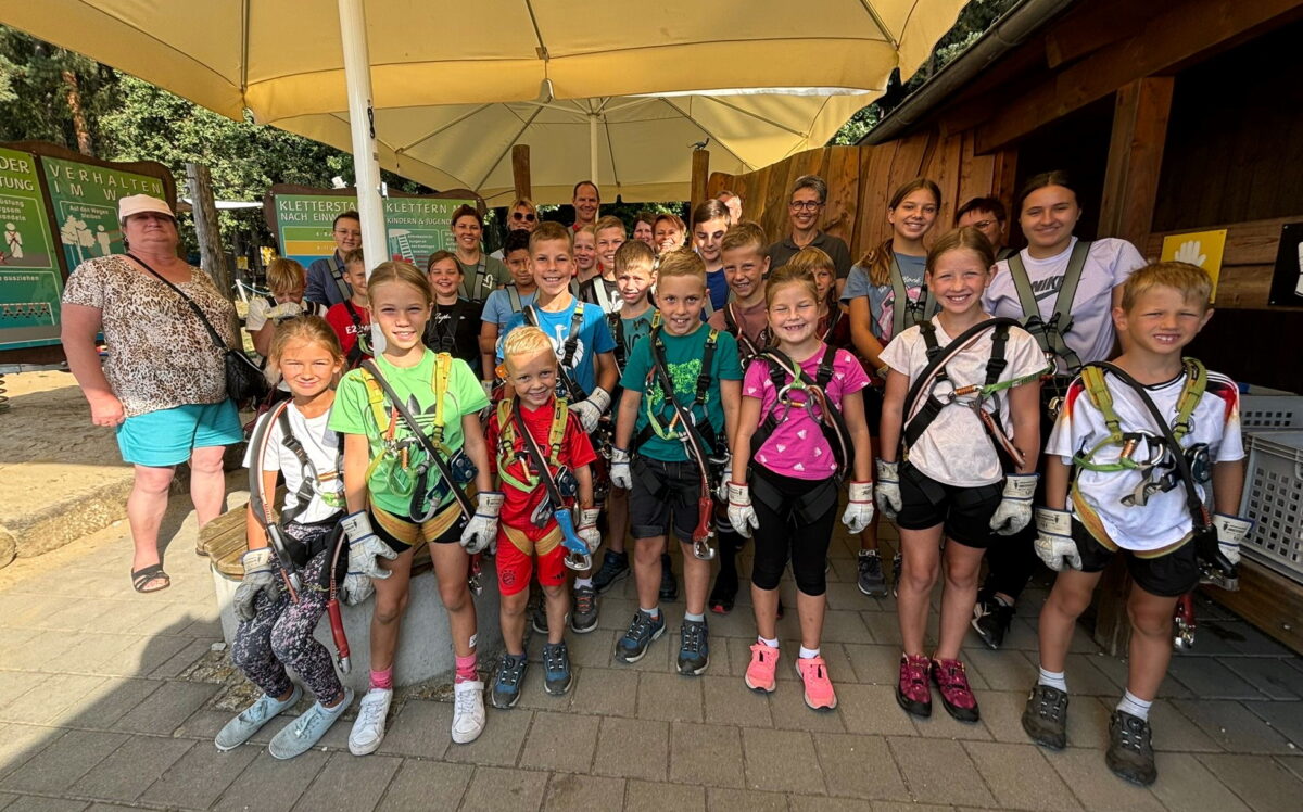 Der Skiclub Pistenschwinger Gössenreuth hatte zu dieser Aktion eingeladen und finanzierte auch die Busfahrt für die kleinen und großen Abenteurer. Nach der Einführung und dem Probeklettern mit dem tollen Team vom Kletterwald ging es ab zum Teil in luftige Höhen. 16 Parcours und drei bis zu 250 Meter lange Seilbahnen standen zur Verfügung. Je nach Alter und Körpergröße waren die Kinder auf den verschiedenen Wegen wie Panda, Koala, Lemur, Maki, Pavian, Schimpanse unterwegs und hatten viel Spaß dabei. Dazwischen wurde sich bei einer Brotzeit gestärkt, bevor es am Nachmittag wieder nach Hause ging.