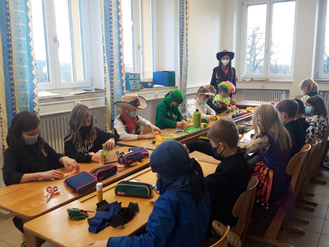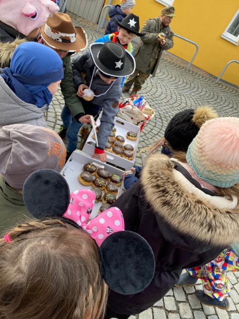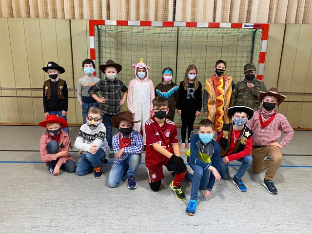 In den einzelnen Klassen stellten die Kinder ihre Kostüme vor: Von Cowboys über Einhörner bis hin zu Ninja-Kämpfern und Star Wars-Figuren war alles dabei. Unter Einhaltung der Hygienevorschriften wurden in den Klassen vielfältige Aktionen vorbereitet und in der Turnhalle Faschingsspiele gemacht. Zur Stärkung von so viel närrischer Ausgelassenheit spendierte der Elternbeirat als Höhepunkt den Kindern leckere Krapfen.