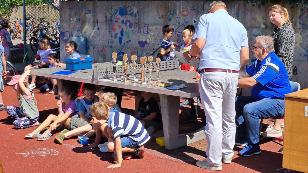 Bei der Verleihung der Medaillen und Pokale jubelten alle Kinder und freuten sich mit den Gewinnern. Die Wertung erfolgte einmal nach Mädchen und Jungs. Hier gab es für die drei Erstplatzierten jeweils eine Medaille. Eine Gesamtwertung nach Fehlerpunkten und Zeitmessung ergab noch drei Pokalsieger pro Klasse.