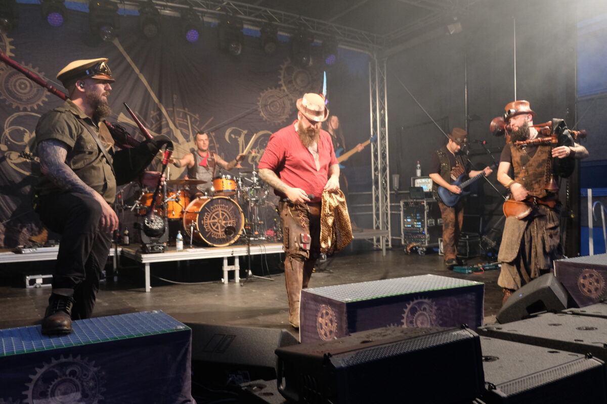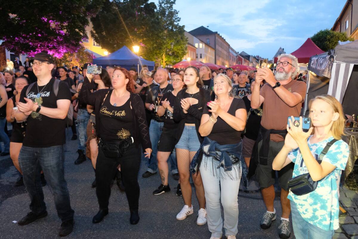 Temperamentvoller Bürgerfestauftakt mit Mittelalterrock und Dudelsack-Spektakel. Bürgerfestbeginn einmal anders. Dem offiziellen Festsonntag ging ab dem späten Samstagnachmittag bis in die Nacht hinein ein „Pre-Opening“ voraus. Von Vereinen und Wirten organisiert, begann das Festgeschehen schon zur Feierabendzeit mit Countrymusik von Andrew James. DJ Stink bot mit einer After Show Party das Beste aus den 80er und 90er Jahren. Die Nacht gehörte dann dem „Volk der Germanen“. Die Band „DEUS VULT“ trumpfte auf. Sieben „dunkle Gestalten“ kamen aus dem Mittelalter. Über den Marienplatz schallten Dudelsackklänge und groovige Sounds. Aggressiv und rockig wandelten die „edlen Wilden“ musikalisch zwischen Himmel und Hölle, Göttern und Riesen.
