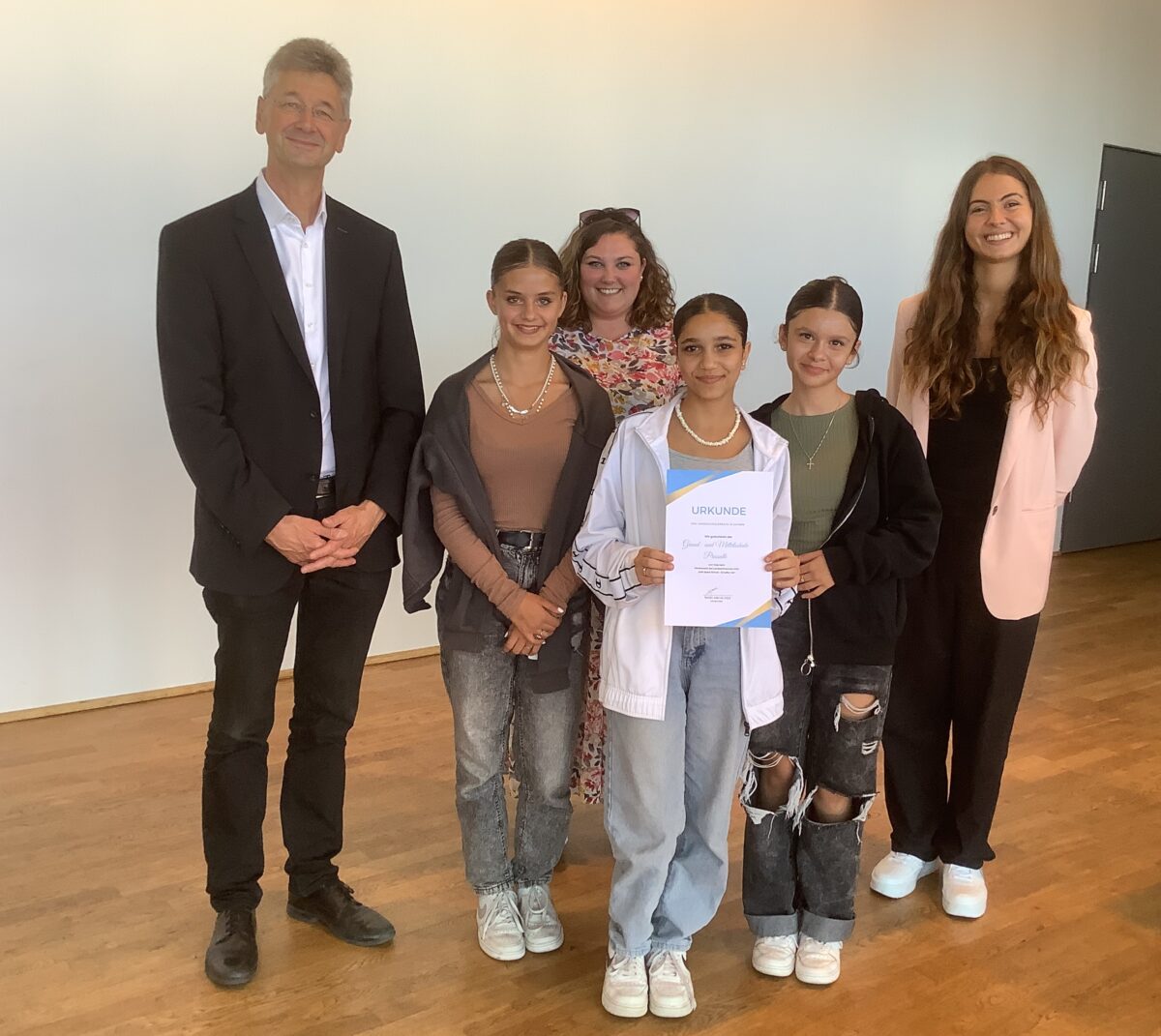 Verbunden mit dieser Ehrung ist ein Preisgeld in Höhe von 500, Euro, das für die Weiterarbeit der SMV verwendet werden soll. Die Teilnehmerinnen aus Pressath – neben Jugendsozialarbeiterin Laura Drechsler Schülersprecherin Joanna Zintl, die Motto-Wettbewerbssiegerin Fatima Ahmadova und Varvara Sovatzi aus der 8. Klasse – waren von der Zeremonie und von ihrem Erfolg begeistert. „Wir freuen uns riesig, dass unsere Arbeit so anerkannt wird und hoffen, dass unsere Schule tatsächlich ein sicherer Raum für alle ist“, zog die 15-jährige Fatima ein rundum positives Fazit.