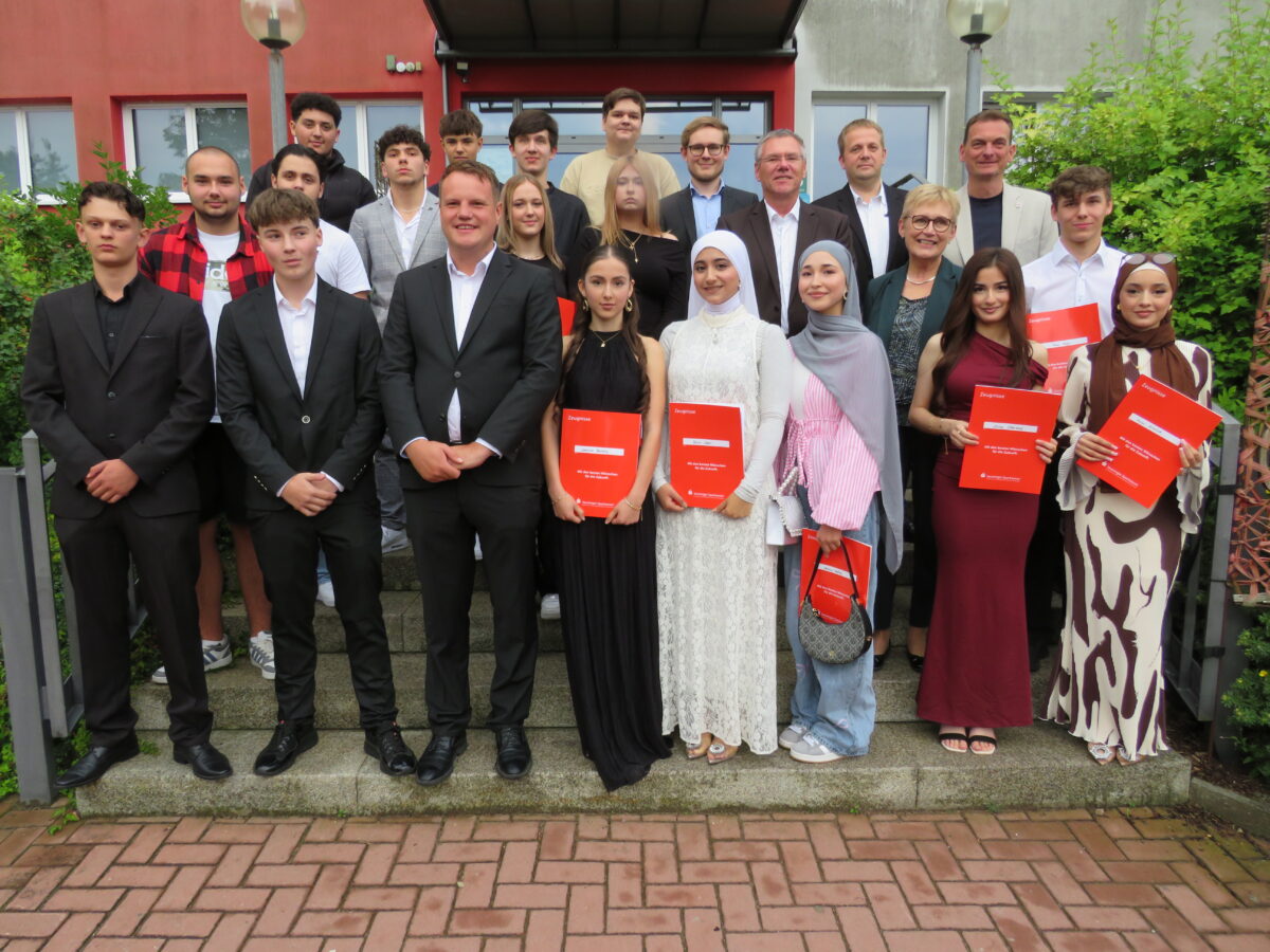 Jetzt liegen viele neue Wege vor euch. Was ihr daraus macht, liegt nun mehr und mehr in eurer eigenen Verantwortung. Jeder von euch bringt Stärken mit, die euch weiterhelfen werden – im Beruf, in der Schule und im Leben. Nutzt die Chancen, die sich euch bieten. Reitinger-Meier dankte allen Eltern, Lehrerinnen und Lehrern und den Klassenlehrer Jonas Dittrich und Birgit Sticht. Sie haben euch auf eurem Weg begleitet haben. Sie wünschte den Absolventinnen und Absolventen, alles Gute für eure Zukunft.