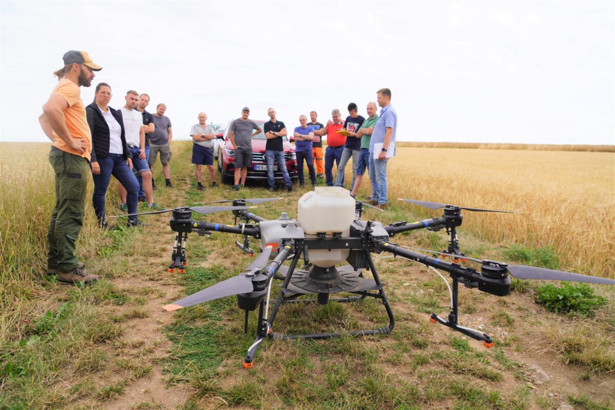 - Agrardrohne: DJI Agras T 30 (DJI ist Weltmarktführer Drohnen – größte in Europa derzeit käuflich erwerbbare Drohne im Agrarbereich)