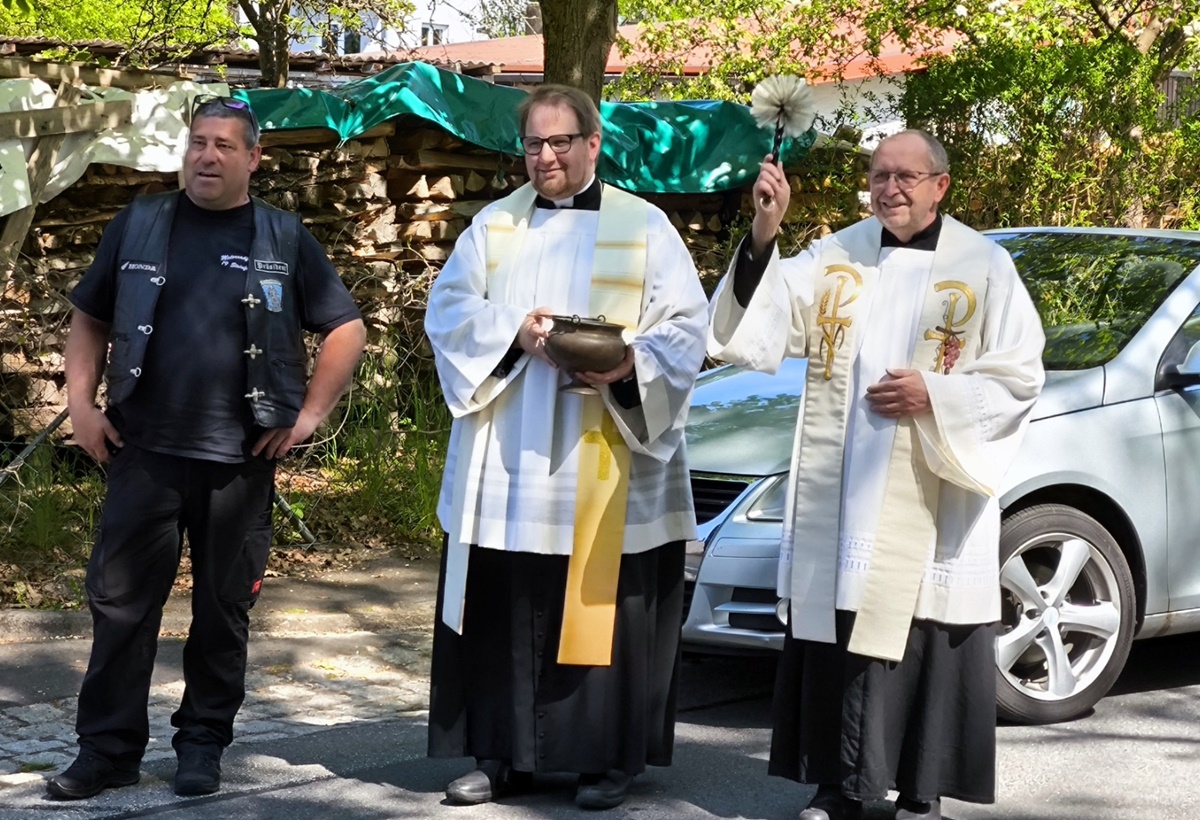 Den Gottesdienst selbst hielten erneut Seelsorger Thomas Thiermann aus Plößberg und Pfarrer Daniel Fenk aus Grafenwöhr. Auch in diesem Jahr war die Segnung der Motorräder durch die beiden Geistlichen einer der emotionalen Höhepunkte der Veranstaltung. Aufgrund des großen Andrangs mussten sie diesmal einen besonders langen Weg zurücklegen – die Motorräder standen dicht an dicht bis weit hinter die Absperrungen.