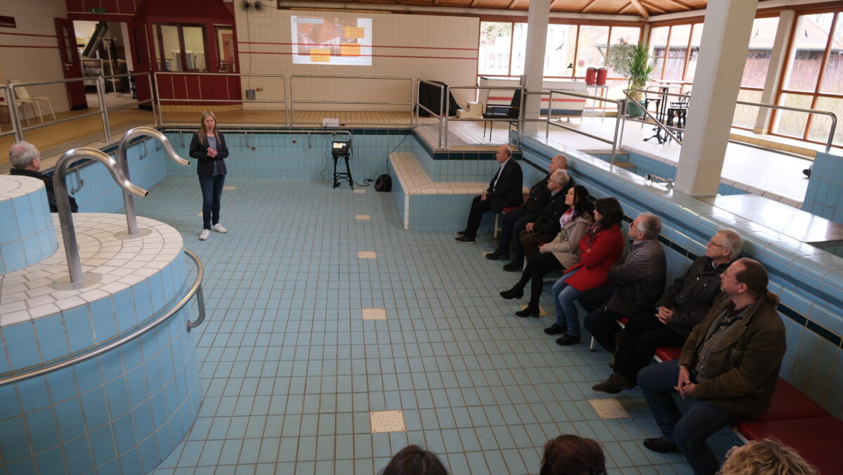 Annette Spreitzer führte durch die frühere Badeanstalt, die heute ein Ort für Kunst, Konzerte und Theateraufführungen ist. Derzeit ist dort noch Baustelle, aber erste Veranstaltungen konnten bereits mit großem Erfolg durchgeführt werden. Die Museumsleiter zeigten sich beeindruckt von dieser einzigartigen Location.