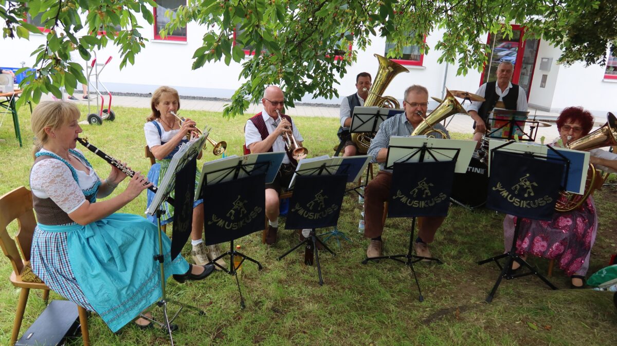 Im Anschluss waren die Besucher zum Frühschoppen und Mittagessen geladen. Am Nachmittag spielte dann die Gruppe “Musikuss”. Natürlich gab’s die üblichen Spezialitäten vom Grill und kühle Getränke. Die Kinder waren auf der Spielwiese unterwegs. Alle halfen mit: Pfarrgemeinderat, KAB und Frauenbund. Von der Kaffeestube bis zum Ausschank. Die Grüße der Stadt überbrachte Bürgermeister Reinhold Wildenauer. Organisiert wurde das Fest vom Sprecher des Pfarrgemeinderats Markus Dippold und dessen Stellvertreter Alois Schröpf.