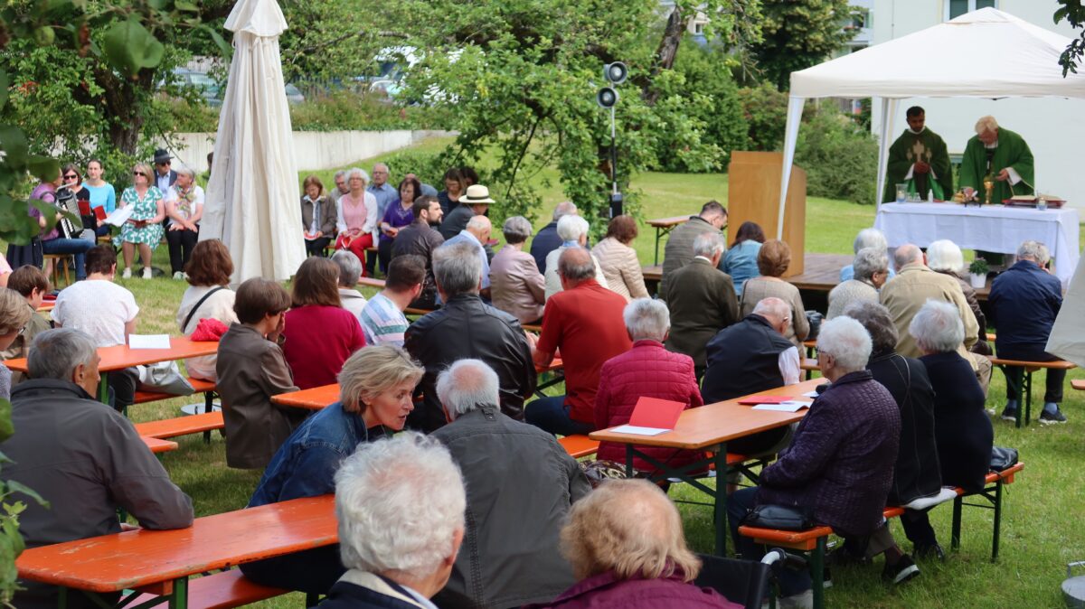 Bei sonnigem Wetter feierte am Sonntag die Pfarrei St. Johannes ihr traditionelles Pfarrfest im Pfarrgarten. Bereits der Familiengottesdienst wurde ins Freie verlegt. Dort lehnte sich Stadtpfarrer Gottfried Schubach ans Sonntagsevangelium an und bat die Gläubigen, entsprechend dem Gleichnis vom Senfkorn, sich aufs Reich Gottes zu verlassen. Konzelebrant war Pfarrvikar Jomet Joy. Der Gottesdienst wurde musikalisch umrahmt vom Kirchenchor Herz Jesu unter Leitung von Peter Kosmus.