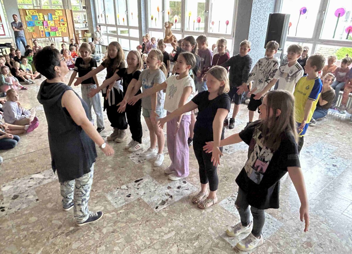 Die beiden dritten Klassen rappten gekonnt und stimmgewaltig den Song „Halt, das ist unser Wald!“ aus der Schule der magischen Tiere. Ruhig und getragen dagegen klangen die Melodien des Musicals „König der Löwen“, die die Klasse 4a eingeübt hatte. Den stimmungsvollen Abschluss bildete die „Schlagerparty“ der Klasse 4b, zu der viele Kinder mitsangen und mitwippten. Insgesamt war der „Tag der Musik“ wieder ein voller Erfolg: Er hielt viele tolle Überraschungen bereit, da ja keiner der Beteiligten vorher wusste, was die anderen vorbereitet hatten. Alle hatten Spaß am gemeinsamen Musizieren mit Tanz, Gesang und Rhythmus so wie es der Aktionstag Musik in Bayern vermitteln möchte.