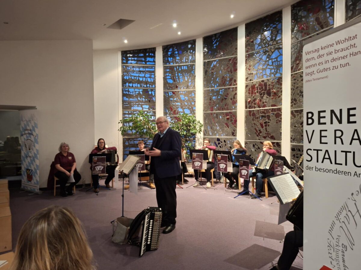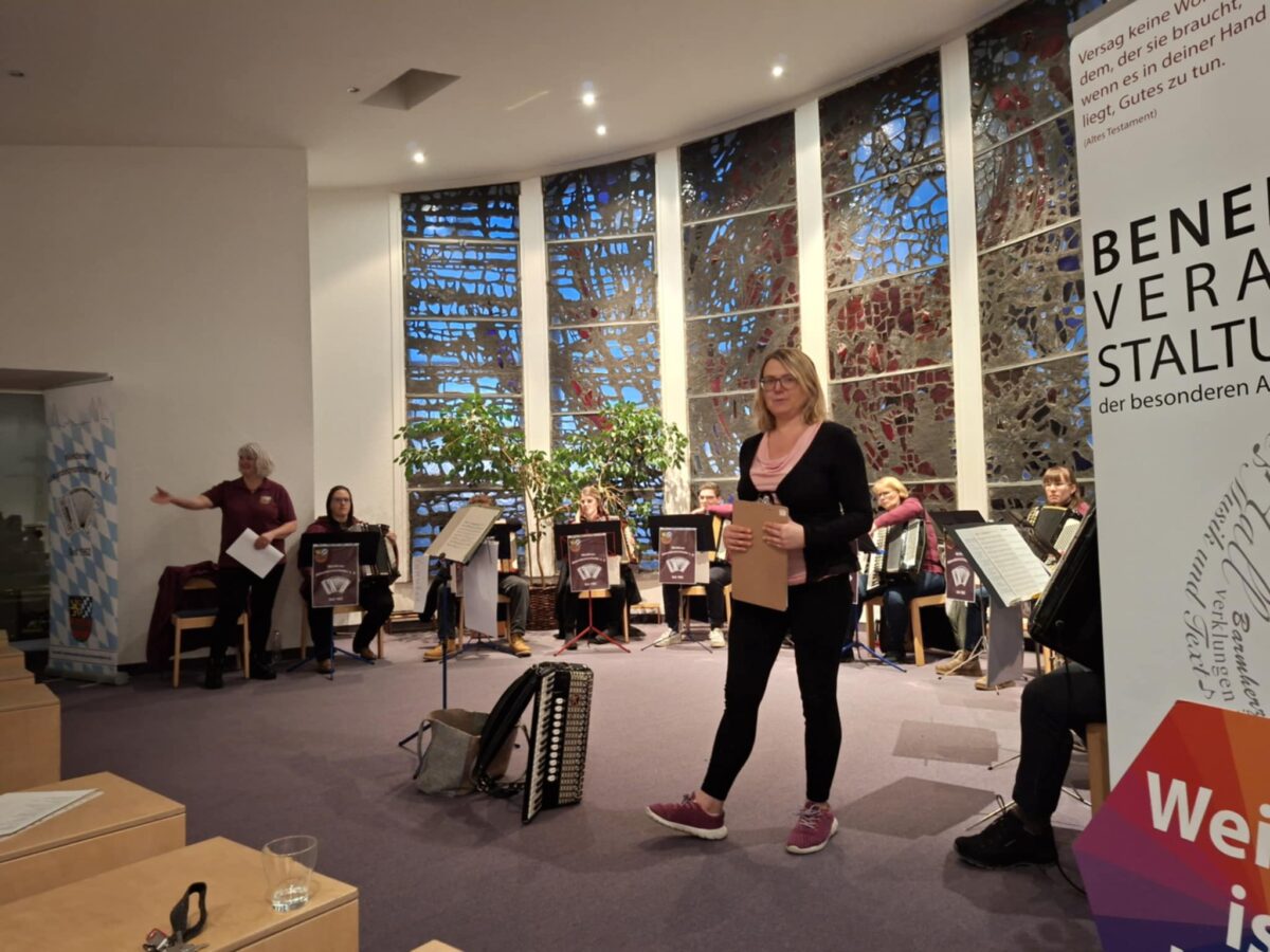Den musikalischen Teil gestaltete in diesem Jahr das Weidener Akkordeonorchester, das die Zuhörer mit seinem breiten Repertoire aus verschiedensten Musikgenres begeisterte: Von ans Herz gehenden Melodien wie „Moon River“ und Leonard Cohens „Halleluja“ über bekannte Film- und Volksmusik bis hin zu Michael Jacksons „We are the World“ und dem bekannten Gospelsong „Oh Happy Day“ war alles dabei.