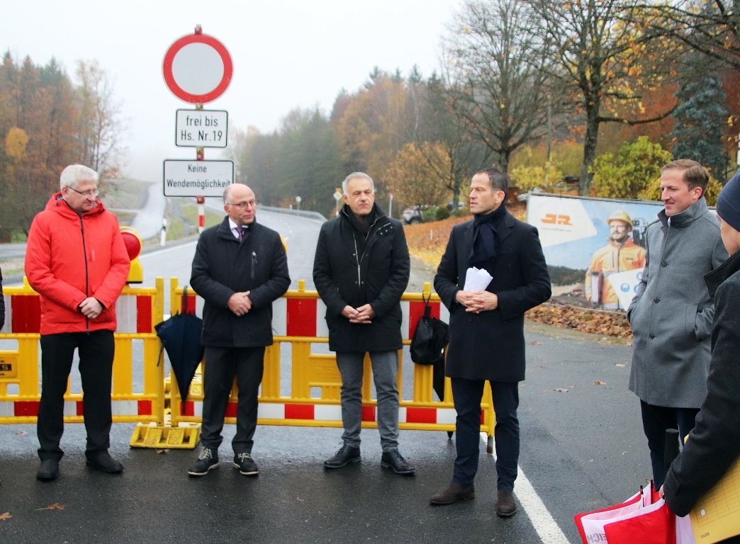 „Wo in diesen Zeiten Straßenbau gesellschaftspolitisch sehr kritisch beäugt wird, freut uns natürlich das Lob von Anwohnern und der Politik besonders“, betonte Baudirektor Tobias Bäumler. Ganz ist die B 299 noch nicht fertig, die sogenannte Fauna-Brücke fehlt noch.