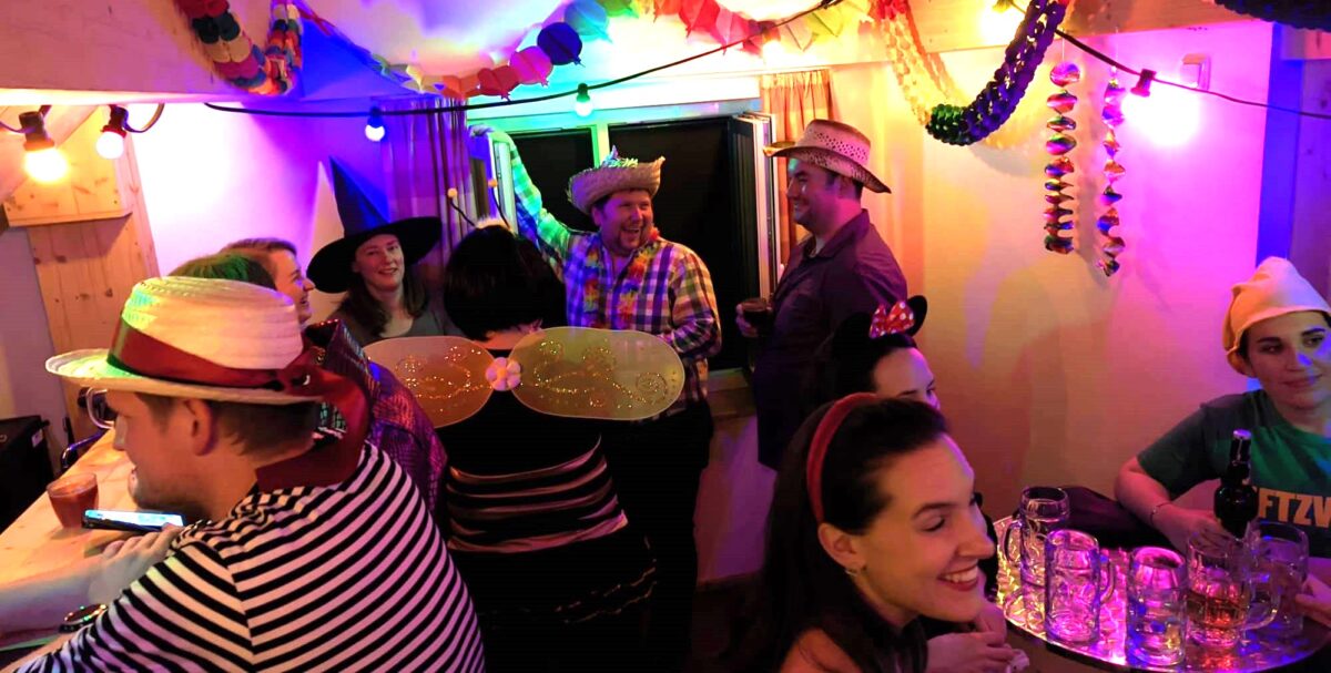 Wichtige Faschingsregeln wie “gute Laune mitbringen” und “den Weg zur Bar finden” wurden eingehalten. Die Besucher mit ihren fantasievollen Verkleidungen wurden von Monaco-Franze mit einem lauten „Helau“ begrüßt. Engel Aloysius, der eigentlich mit wichtigen göttlichen Ratschlägen zur Regierung unterwegs war, vergaß seinen himmlischen Auftrag und mischte sich stattdessen unter das feiernde Faschingsvolk.