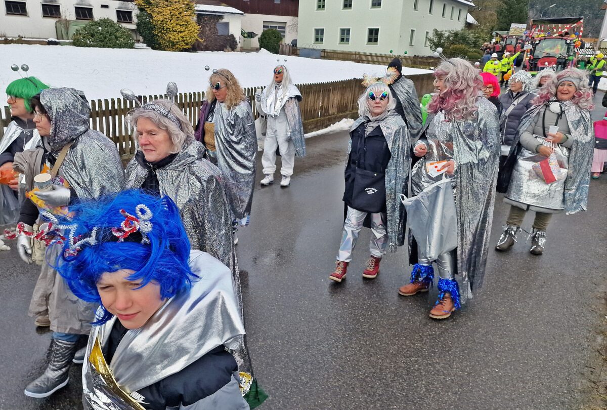 Angeführt wurde der Zug vom SPD-Wagen unter dem Motto „Hexen, Zauberer und Kobolde“. Besonders die jüngsten Narren standen im Mittelpunkt: Kinder warfen eifrig Bonbons, verpackte Erdnussflips und Krapfen ins Publikum, während die Erwachsenen mit Getränken versorgt wurden. Auch der TV Bechtsrieth reihte sich mit einem geschmückten Anhänger ein. Sportsymbole zierten die Außenwände. Aktive und Kinder verteilten Süßigkeiten im Akkord. Die Line-Dancer aus Irchenrieth sorgten als Fußgruppe im silbernen Outfit für rhythmische Akzente und viel Applaus.