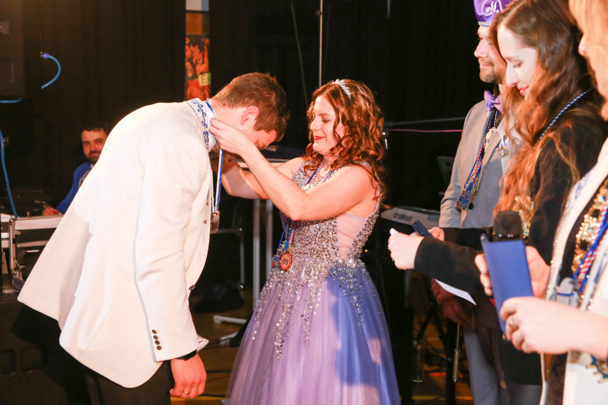 Auch die große Garde sorgte mit ihrem beeindruckenden Gardemarsch für Staunen. Als Anerkennung für die vielen fleißigen Helfer des Abends wurden Jahresorden verteilt, darunter eine besondere Auszeichnung für Peter Karzmarczyk, langjähriger Revisor und Ehrenmitglied. Unter Standing Ovations wurde er von Präsidentin Forster zum Ehrensenator ernannt – ein emotionaler Moment, der von allen Ehrensenatoren auf der Bühne begleitet wurde.