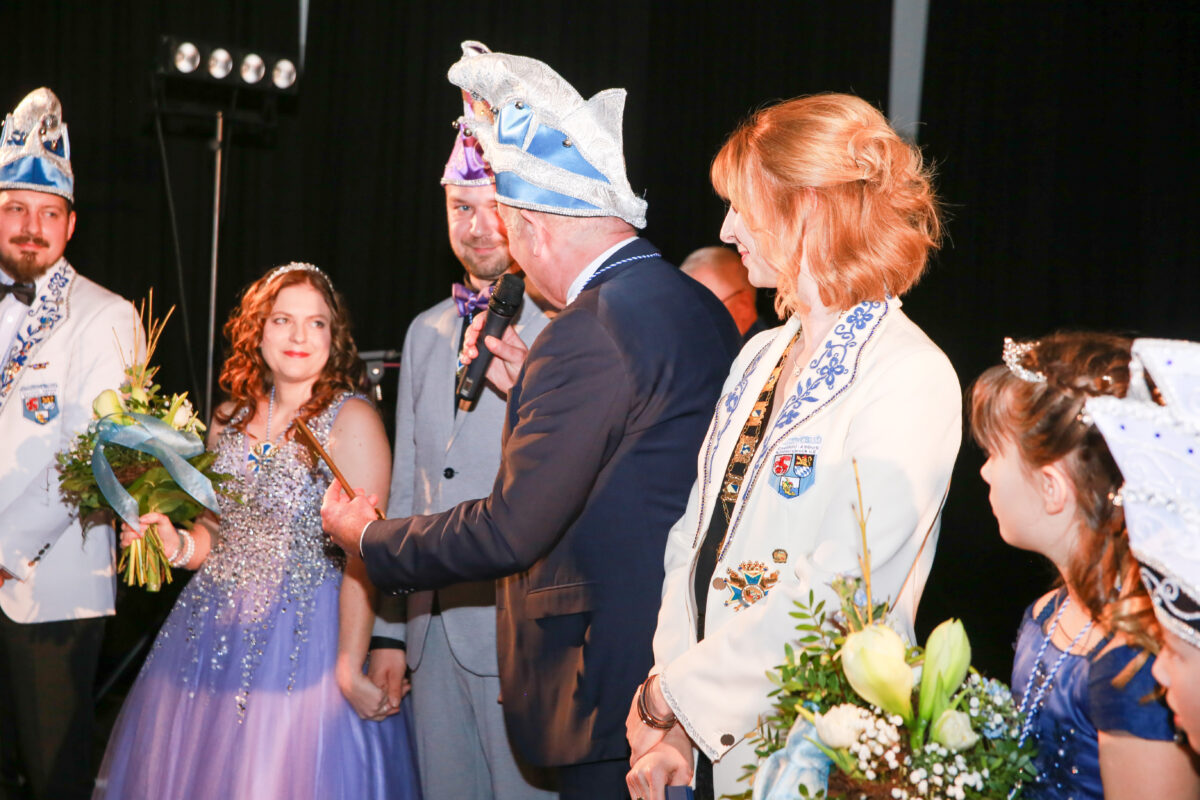 Die Eröffnung begann mit dem Einzug der gesamten Narrhalla-Gesellschaft in die prächtig geschmückte Halle. Unter großem Applaus folgte die Inthronisation des Kinderprinzenpaares Emely II. und Fritz I. sowie des großen Prinzenpaares Nina I. und Dominik I., die von Präsidentin Denise Forster vorgestellt wurden. Anschließend überreichte sie den ersten Jahresorden des Abends an Bürgermeister Strehl, der in seinem Grußwort von einem „wahnsinnigen Anblick“ sprach und die Vielfalt der Narrhalla, von den jüngsten Mitgliedern bis hin zu den Ehrengästen, lobte. Zum Abschluss seines Auftritts übergab er symbolisch den Schlüssel des Kümmersbrucker Rathauses.