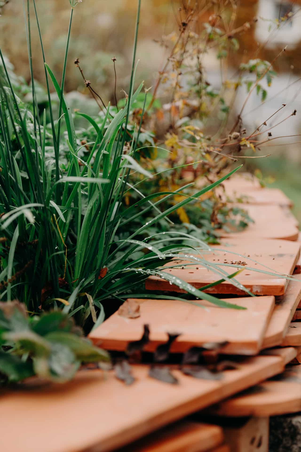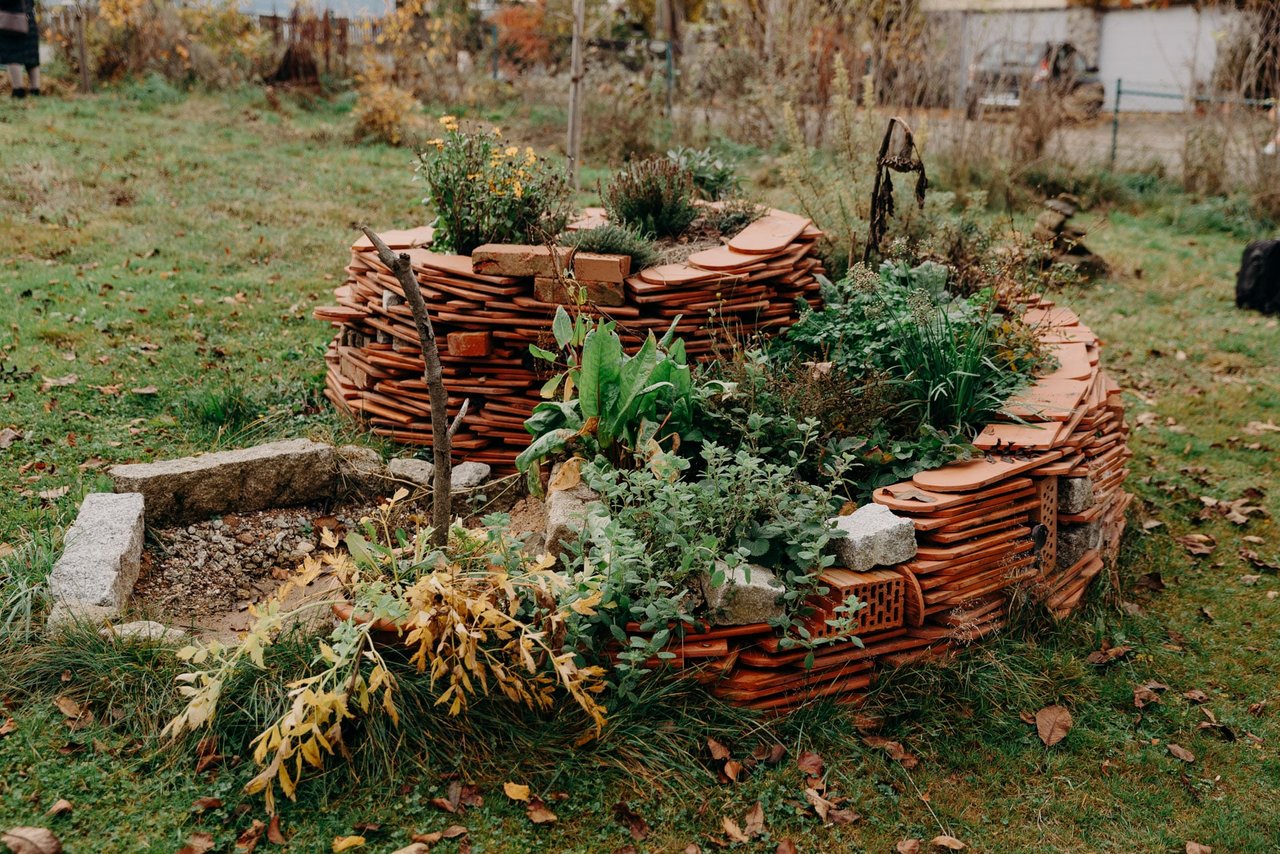 Wie bunt und vielfältig ein Naturgarten sein kann erleben wir auch im Garten der Familie Frieser, in dem uns Anika und ihr kleiner Sohn Oskar begrüßen. Hier fällt besonders eine individuelle Kräuterschnecke ins Auge, die ausschließlich aus vorhandenen Materialien gestaltet wurde. Neudeutsch also „Upcycling“. Es gibt reichlich Platz zum Sitzen und Genießen, zum Träumen und Entspannen. Kindern bietet dieser „Abenteuerspielplatz“ eine Fülle an Sinneseindrücken und lädt zum Spielen und Entdecken ein.