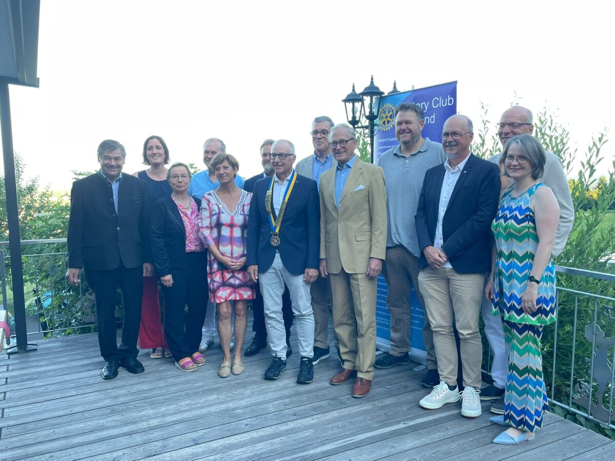 Der Rotary Club Stiftland hat bei strahlendem Wetter und einem weiten Blick über das Stiftland eine wichtige Zeremonie gefeiert. Fast alle Mitglieder samt Ehepartnern versammelten sich auf der Terrasse des Hotels zum Hackelstein. Sie feierten die Übergabe der Präsidentschaft von André Putzlocher an Herbert Männl.