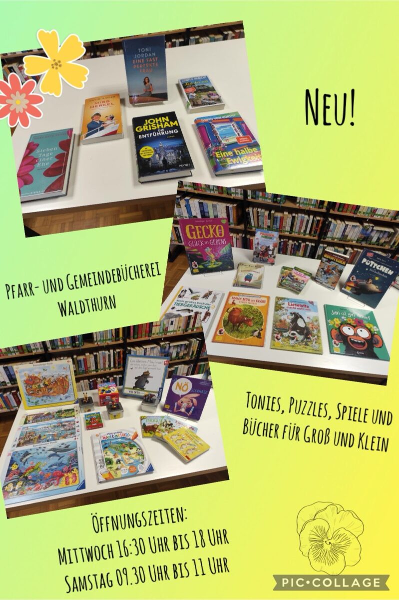 Die Leiterin Cornelia Greiner-Braun und ihr Büchereiteam stellen zu Beginn des Frühlings verschiedene neue Tonies, Puzzles, Spiele und Bücher vor. Nicht nur für die Kleinen, auch für größere Kinder, Jugendliche und Erwachsene wartet zum bisherigen umfangreichen Angebot wieder zusätzlich Interessantes zur Ausleihe.