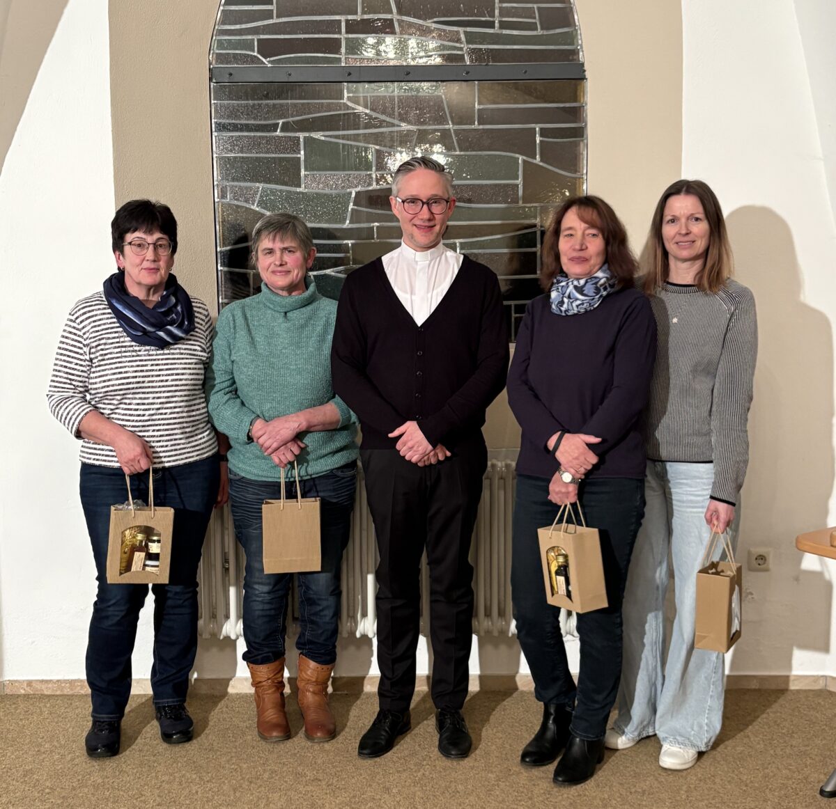 Verabschiedet wurden Hans Grünthaler, Judith Völk sowie Erika Parton, die jeweils eine Wahlperiode im Pfarrgemeinderat tätig waren, Nicole Riedl und Anneliese Wirth, die jeweils über drei Wahlperioden hinweg im Gremium mitwirkten, sowie Sieglinde Weig, die dem Pfarrgemeinderat seit 1998 angehörte.