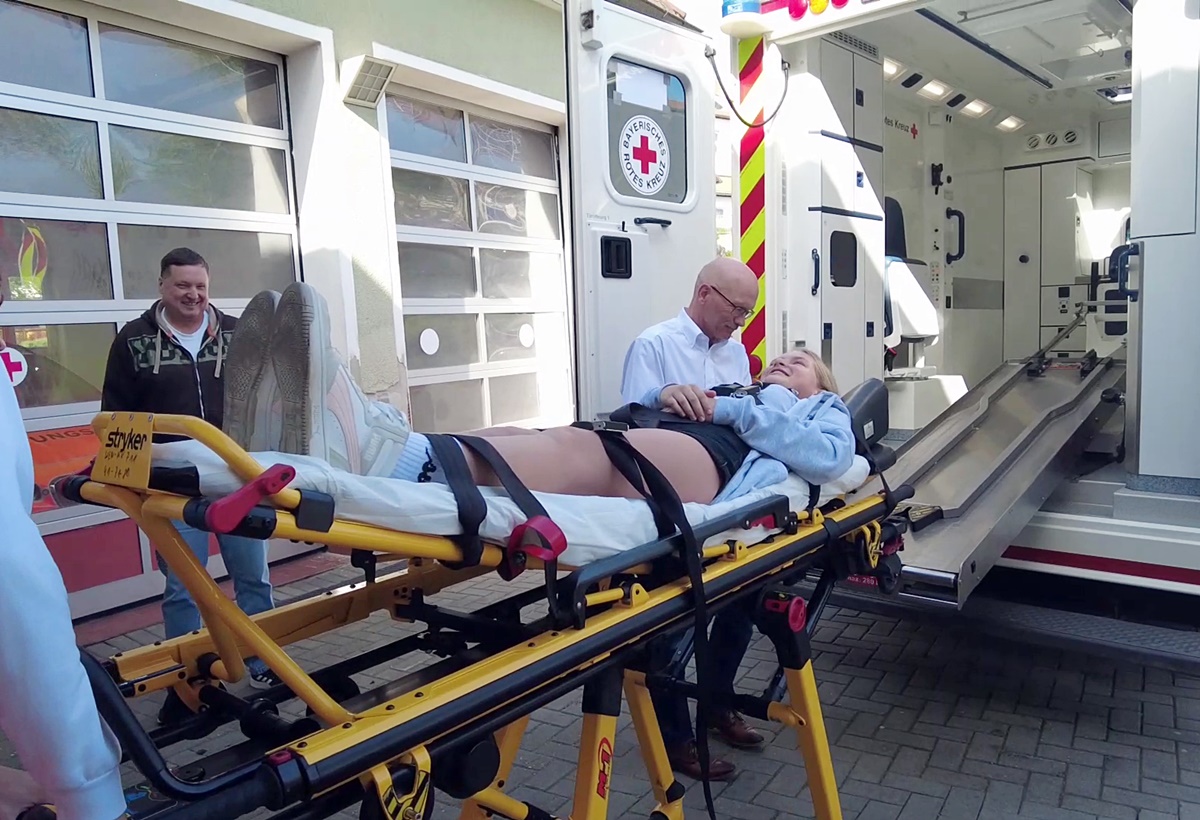 Natürlich durfte auch eine Besichtigung des Notarzteinsatzfahrzeuges mit „Probeliegen“ nicht fehlen. Dadurch wurde jetzt das Projekt „Blaulicht“ der AG Schülerzeitung abgeschlossen.