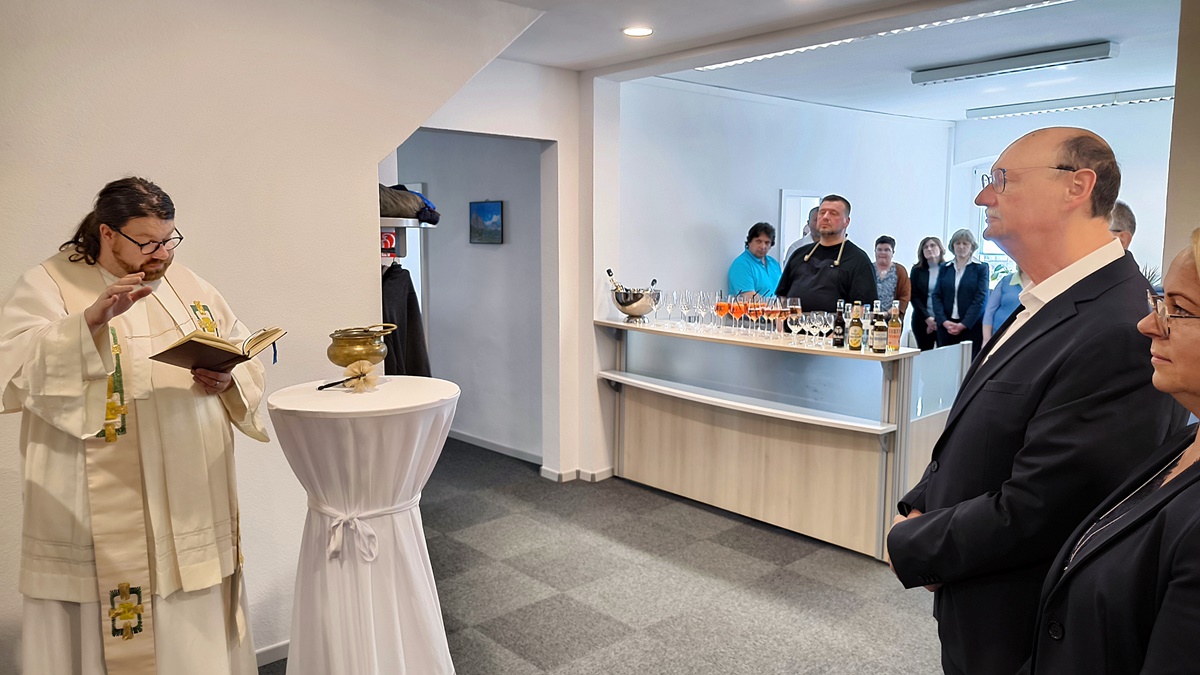 Den feierlichen Rahmen der Eröffnung des Buchhaltungsbüros bildete die Segnung der neuen Räume durch Eschenbachs Pfarrer Pater Johannes. In seiner Ansprache sagte er: „Jedes Haus hat seinen Platz – da gibt es die Kirche, wo man betet, die Banken, wo man Geld sammelt, und Büros, wo man Kunden betreut.“ Er freute sich darüber, dass es am Eschenbacher Stadtberg wieder belebte Geschäftsansiedlungen gibt, die sogar gesegnet werden wollen.