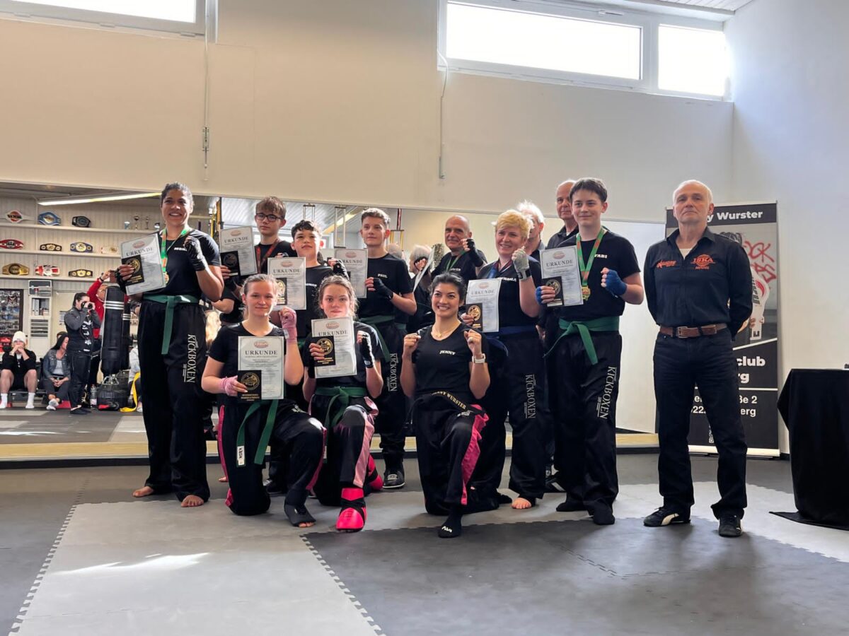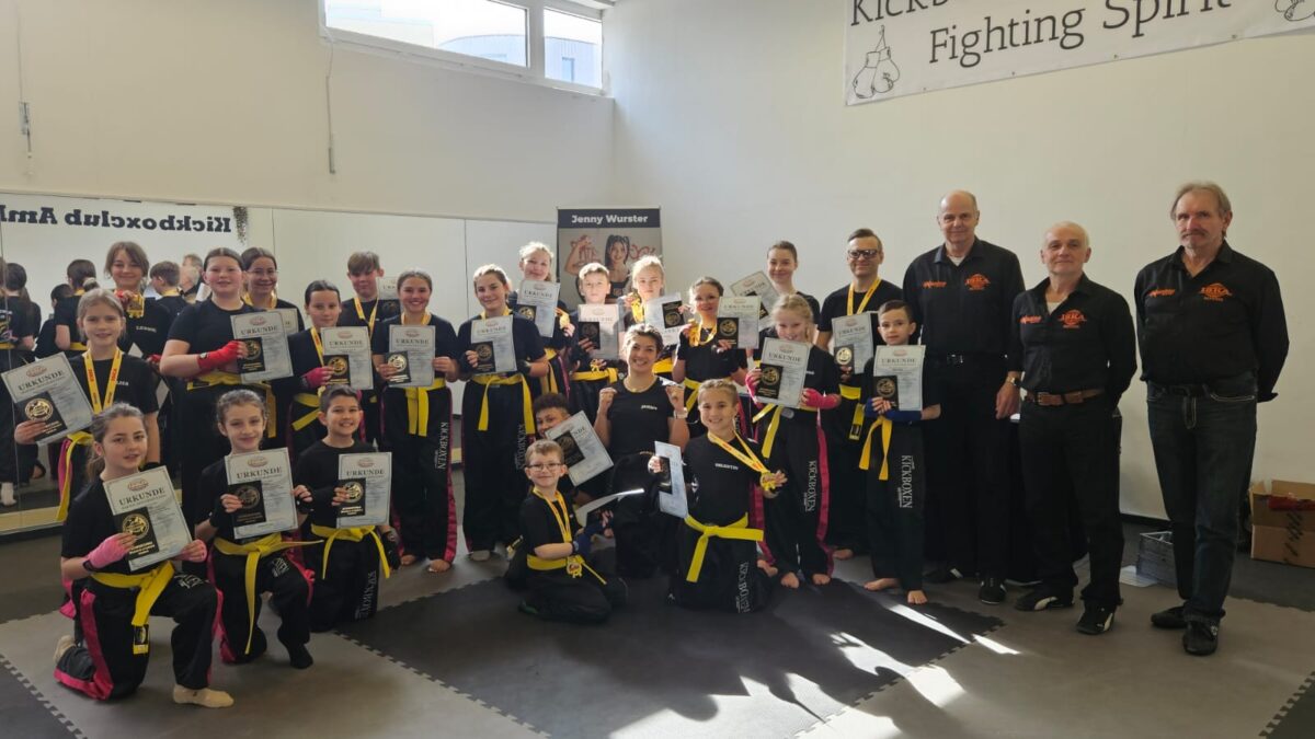 Eine besondere Herausforderung stellte die Prüfung für Max Fizia dar. Er musste zwölf Monate warten, um zur Prüfung für den nächsthöheren Gürtel, den Braungurt, antreten zu dürfen. Zudem ist der 1. Braungurt im Verein erst ab einem Alter von 15 Jahren erlaubt – dieses Mindestalter hat Max nun erreicht. Nach rund zweieinhalb Stunden absolvierte er die anspruchsvolle Prüfung erfolgreich.