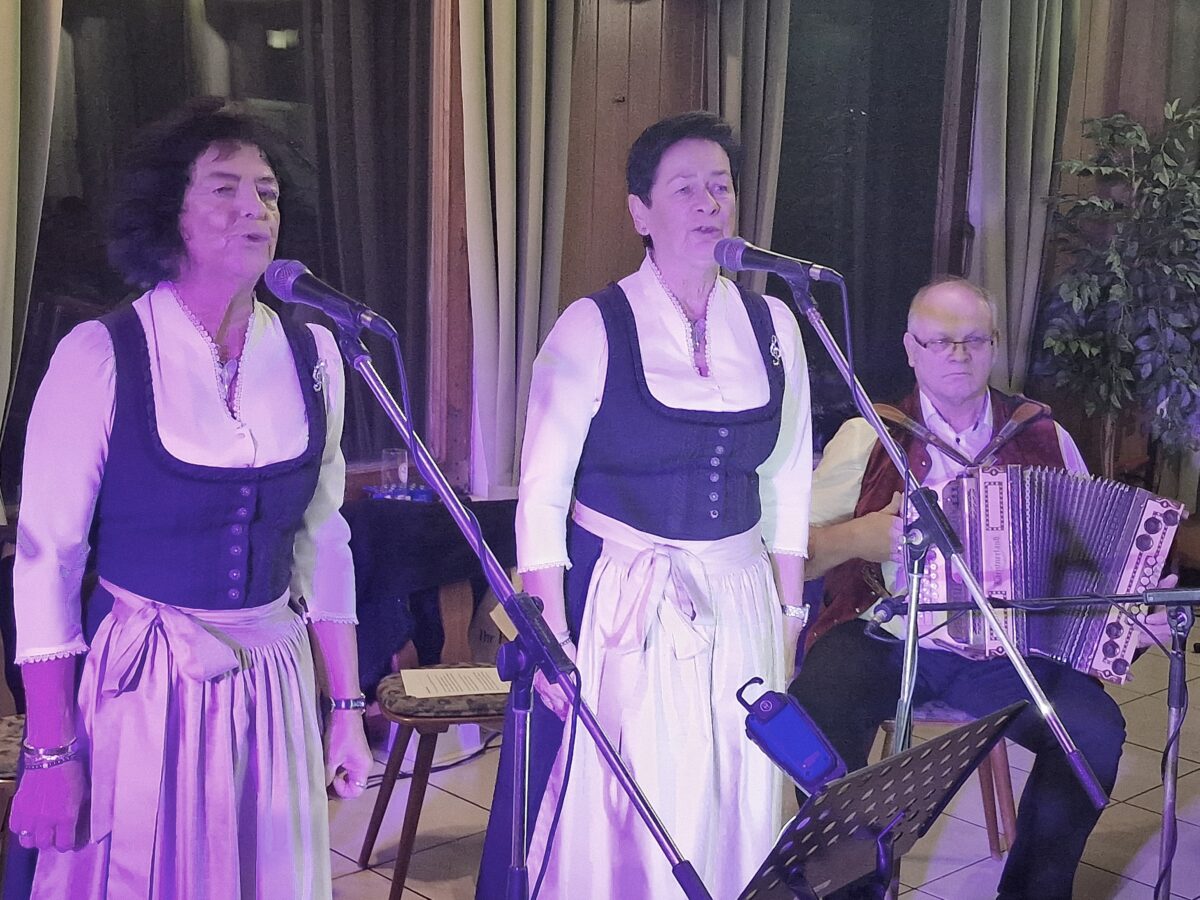 Die “Zupfer-Moidln” Waltraud und Renate, mit Gerhard am Akkordeon, brachten auch selbst Wirtshauslieder, Couplets und witzige Geschichten zum Vortrag. Angekündigt war dann das Multitalent des bayerischen Humors, Josef „Bäff“ Piendl. Der Humorist, Gstanzlsänger und Liedermacher kam mit eigenen Songs, Liedern, Gedichten. Er zeichnete sich durch seine große Schlagfertigkeit aus. Immer wieder überraschte er auf der Gitarre mit spontanen Aktionen.