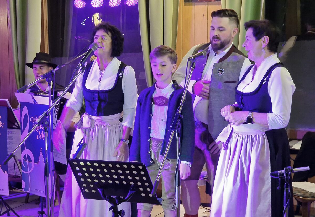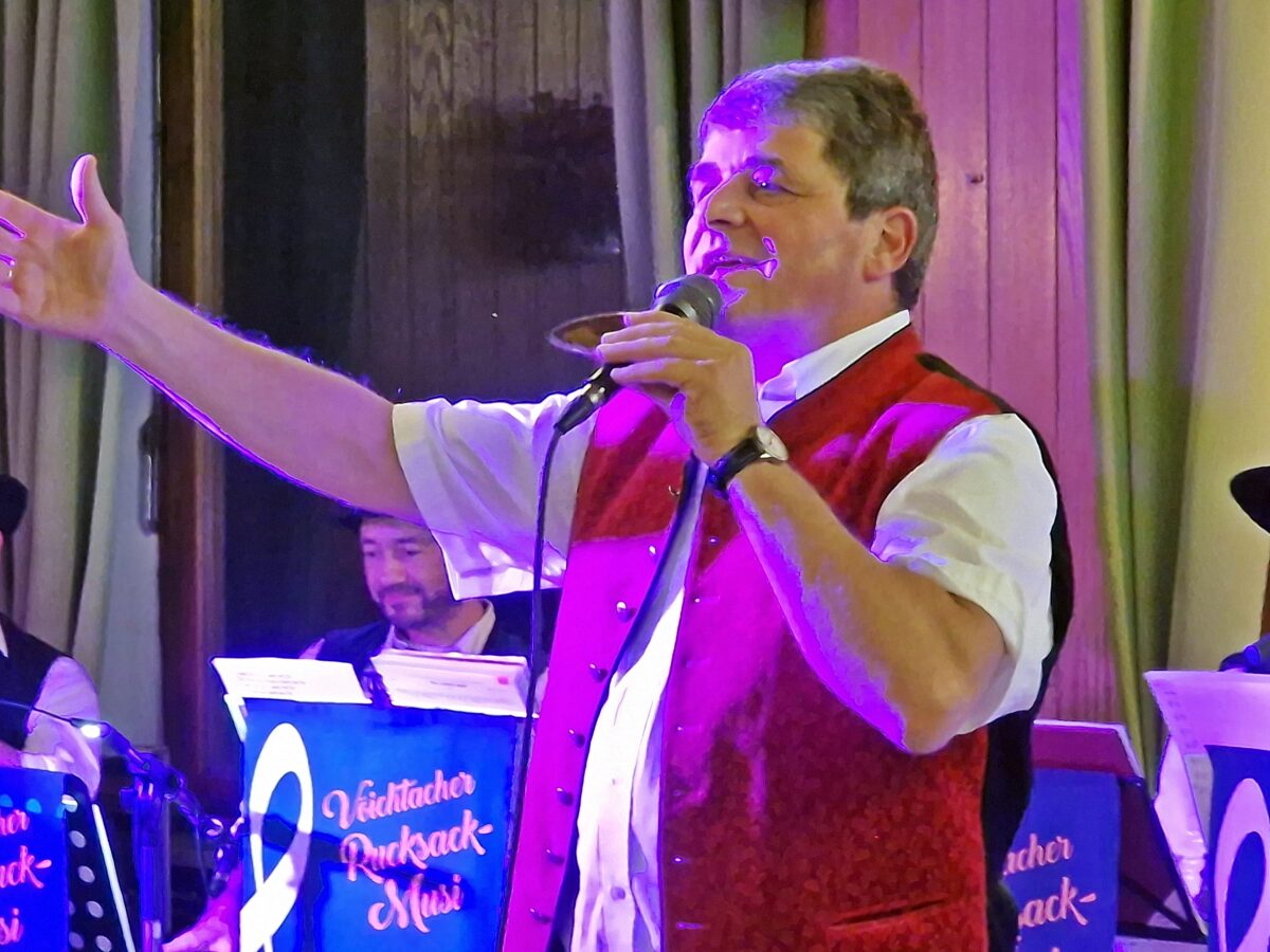 Bürgermeister Sebastian Giering singt mit den Zupfer-Moidln. Foto: Reinhard Kreuzer