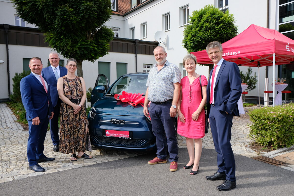 Ein Neustädter Bürger erlebt momentan wohl eine besonders aufregende Zeit. Bernhard Dimler, ein Kunde der Vereinigte Sparkassen Eschenbach, Neustadt, Vohenstrauß, hat das große Los gezogen. Bei der PS-Sparschule sicherte er sich mit einem Los den Hauptgewinn: einen nagelneuen Fiat 500 Elektro. Der Wert des Autos wird auf etwa 40.000 Euro geschätzt. Dieser Gewinn fällt in die Kategorie der Sonderauslosung für den Sparmonat Mai 2024.