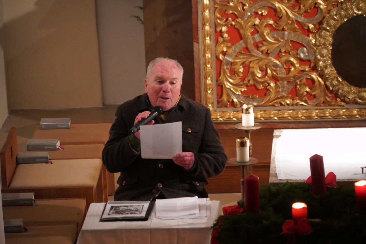 Diese Mutterkirche der Pfarrei Waldthurn war überwiegend in Kerzenlicht getaucht, am Adventskranz brannten Kerzen. Gespannt lauschten die Zuhörer der Weihnachtsgeschichte aus dem Niederbayerischen, übertragen ins Oberpfälzische und vorgetragen von Bertram Erhardt aus „Neistadl“. Er widmete sich damit dem niederbayerischen Mundartdichter Ludwig Gruber, bekannt als „Ponzauner Wigg“.
