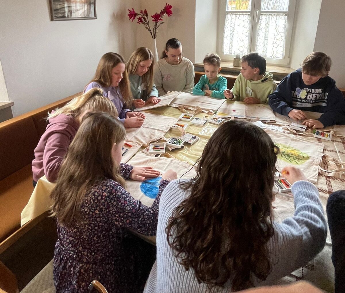 Am Sonntag, den 15. März 2026, trafen sich 15 Kinder aus den Kindergottesdienst-Teams der Gemeinden Mantel und Neunkirchen zum Weltgebetstag der Kinder in Mantel. Als Namensschilder dienten farbenfroh bemalte Schmetterlinge, die von den Kindern und Kigo-Helfern (Letizia Riedel, Katrin Wiesner, Jutta Lippik, Ulrike Kraus, Sandra Prölß und Anja Beutner) gestaltet wurden.