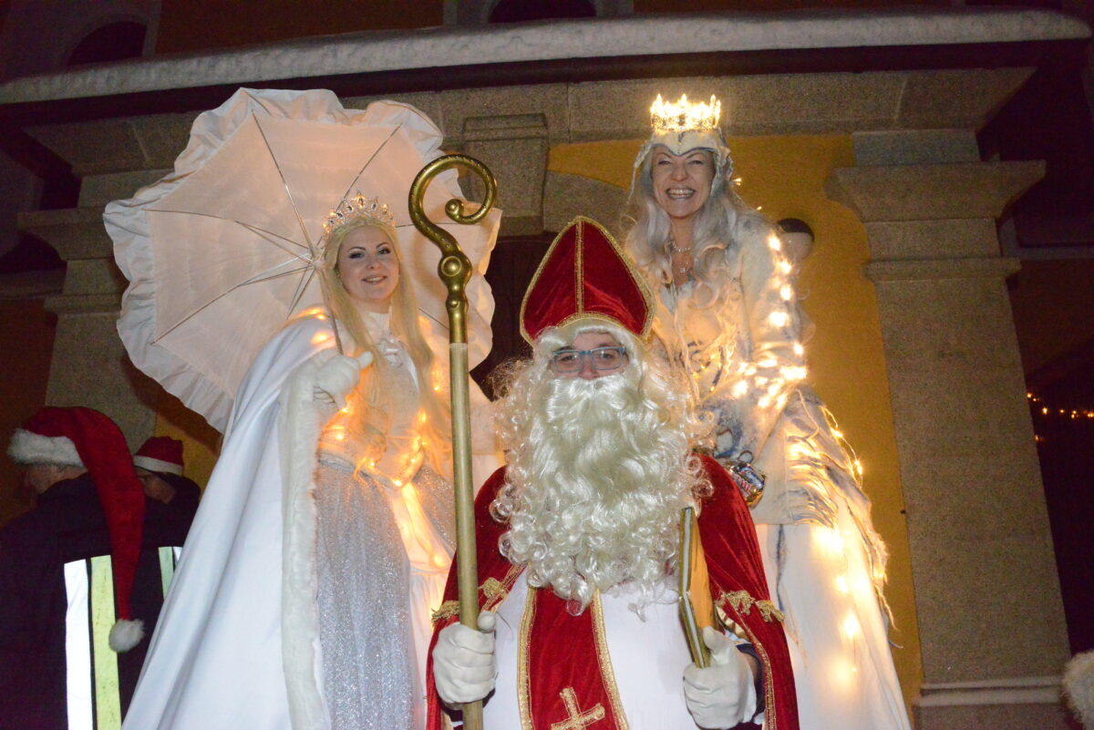 Absoluter Höhepunkt war aber der Einzug des heiligen Nikolaus, den Daniel Grötsch spielte. Dieses Mal begleiten ihn nicht nur viele freiwillige Helfer, die ihm das Tragen der Süßigkeiten abnahmen, sondern erstmals auch eine Schneekönigin und eine Eisprinzessin. Schauspielerinnen vom Theater Sinnesrausch aus Schwarzenfeld verkörperten diese beiden. Natürlich gab es für die Kinder die Möglichkeit zu Fotos mit den drei Weihnachts-Gestalten.