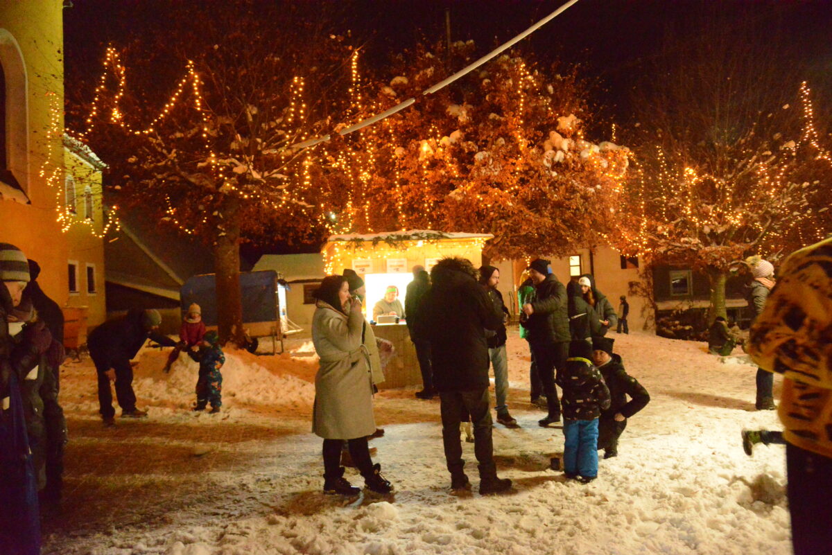 In der Dunkelheit und bei festlicher Beleuchtung kam weihnachtliche Stimmung auf – obwohl erst die erste Kerze am Adventskranz brennt. Rund um den Weihnachtsbaum hatten spielten die Kinder im Schnee, und viele Weihnachtsfreunde drängten sich um die Stände. Es wurden Glühwein, Fruchtspieße, Bratwürste und Waffeln angeboten.