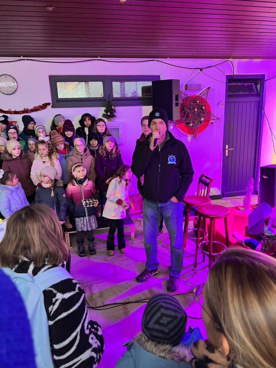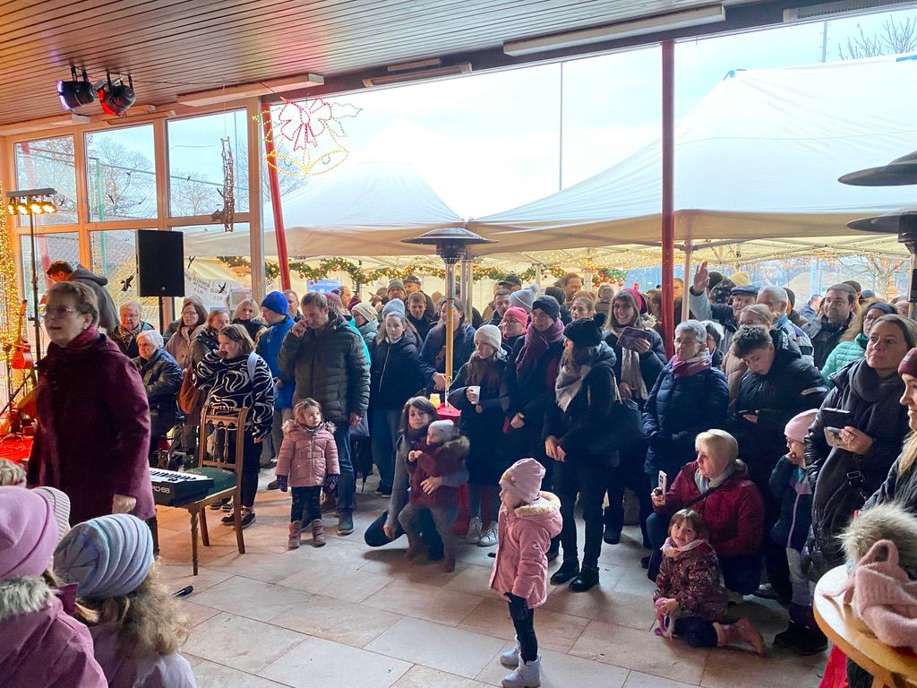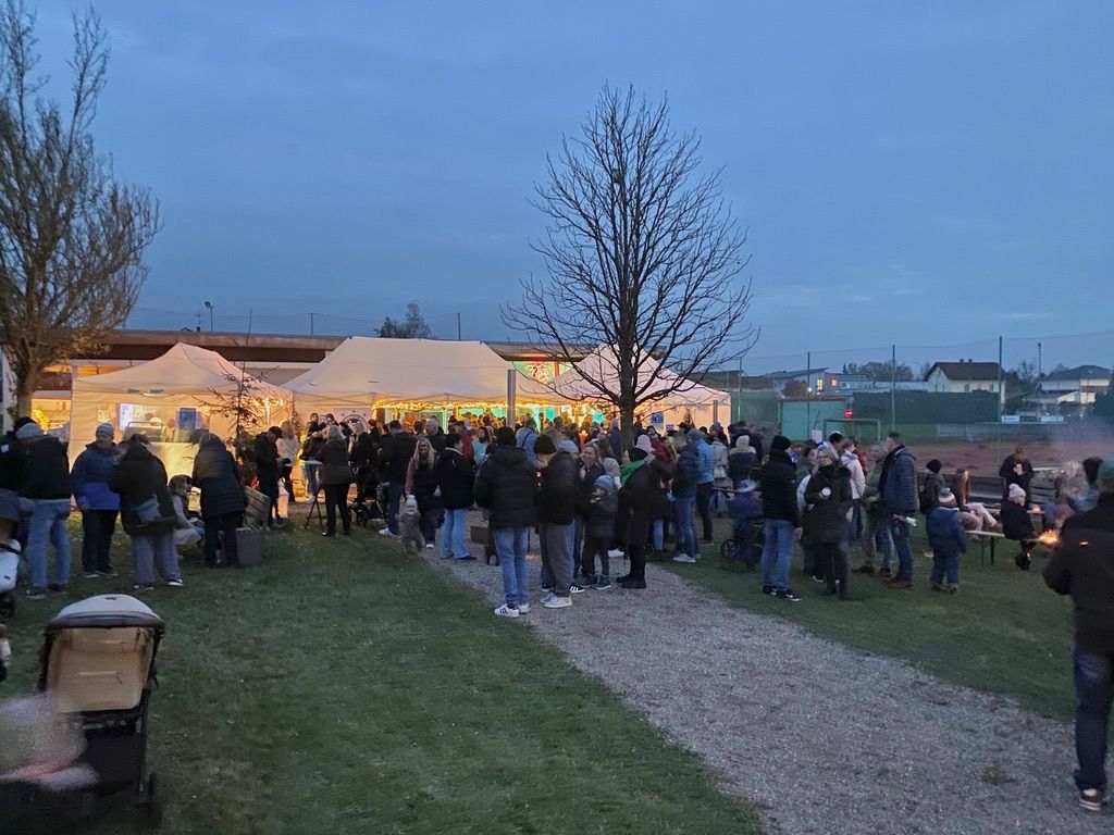 Am Abend spielte das Duo „Tonix“ mit Felix Staufer und Anton Vogl auf und machte gute Stimmung. Natürlich war für das leibliche Wohl bestens gesorgt, darum kümmerten sich mehr als 30 Helferinnen und Helfer. Neben Grillspezialitäten und Waffeln gab es eine Vielzahl von Glühweinsorten, Kaltgetränke wie Bier, Weißwein und Weißweinschorle. Unterwegs waren zu späterer Stunde wieder die „Schnaps-Feen“, die mit Hochprozentigem für etwas Erwärmung sorgten. Zur guten Laune am vorweihnachtlich geschmückten Platz trug zudem das Lagerfeuer bei, an dem es mitunter auch romantisch zuging. Den Besuchern gefiel es, sie lobten vor allem die familienfreundlichen Preise.