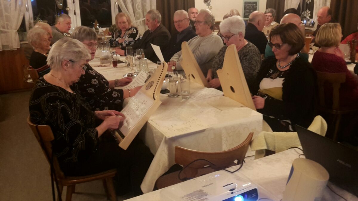 Ein ganz besonderer Gruß galt Elisabeth Oesterreicher, die mit Elfriede Wagner und Susanne Busch den Abend mit ihren Veeh Harfen musikalisch umrahmten. Nach dem Essen begann der besinnliche Teil. Birgit Weinhold erfreute die Anwesenden mit einer lustigen Weihnachtsgeschichte. Abteilungsleiter Graser ließ mit einer Power-Point-Präsentation die letzten drei Jahre Revue passieren. Für viel Heiterkeit sorgte der von Max Pfleger und Reinhard Kirschner vorgetragene Sketch zum Thema Weihnachtsessen.