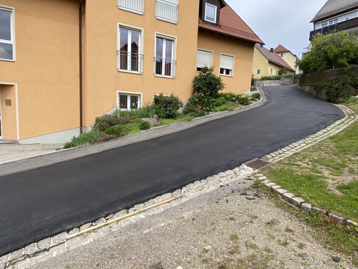 Weg unterhalb Rathaus Der Mündungsbereich des Weges unterhalb des Rathauses in den Neumühlweg ist durch Ausspülungen zum Gefahrenpunkt geworden. Mit einem Kostenaufwand von rund 8.000 Euro wurde das Niveau durch die Firma Huber, Rötz, beider Straßen angeglichen und verkehrssicher gemacht. Dabei war auch ein entsprechender Unterbau erforderlich.