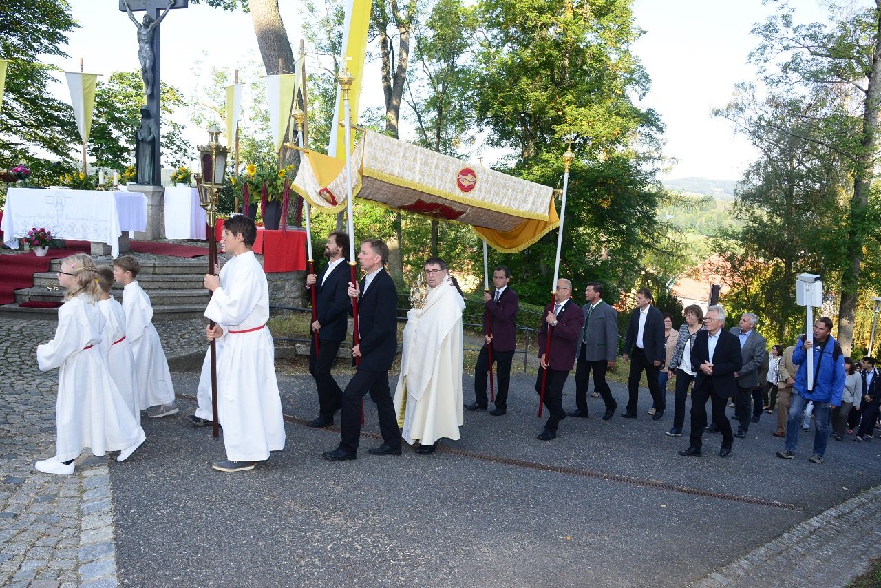 Der Festgottesdienst am Sonntag in der Stadtpfarrkirche St. Sigismund fand unter den Vorgaben der Hygieneschutzverordnung statt. In den Fürbitten nannte Stadtpfarrer Pater Hans Ring das Kreuz auch ein Siegeszeichen über den Tod, eine Menschenverbindende Brücke, den Stab der Pilger, den Schlüssel zum Himmel und das Erkennungszeichen des Glaubens.