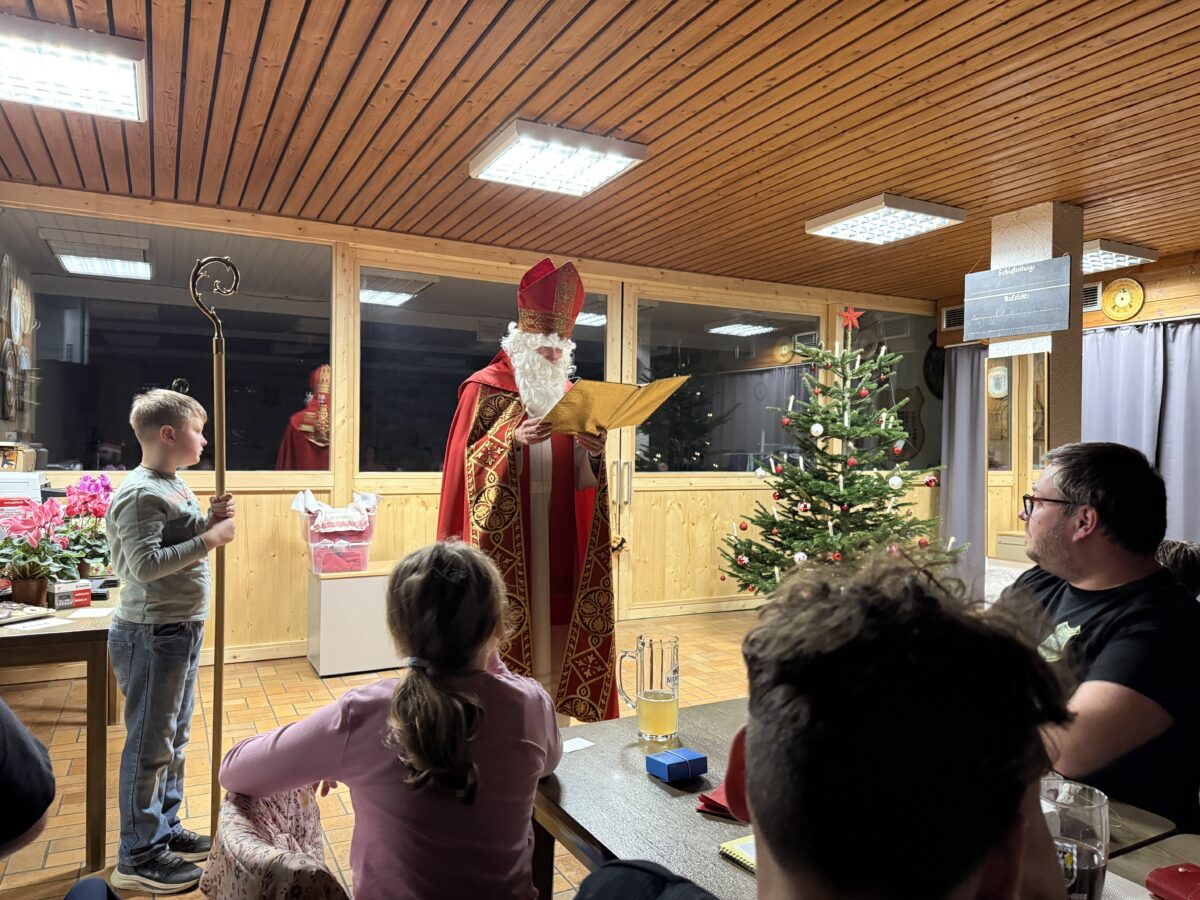 Als Höhepunkt des Abends sorgte der Besuch des Nikolaus für strahlende Gesichter, insbesondere bei den zahlreichen Kindern. In seiner Ansprache lobte er vor allem die Vereinsjugend und fand für alle Mitglieder persönliche und motivierende Worte.