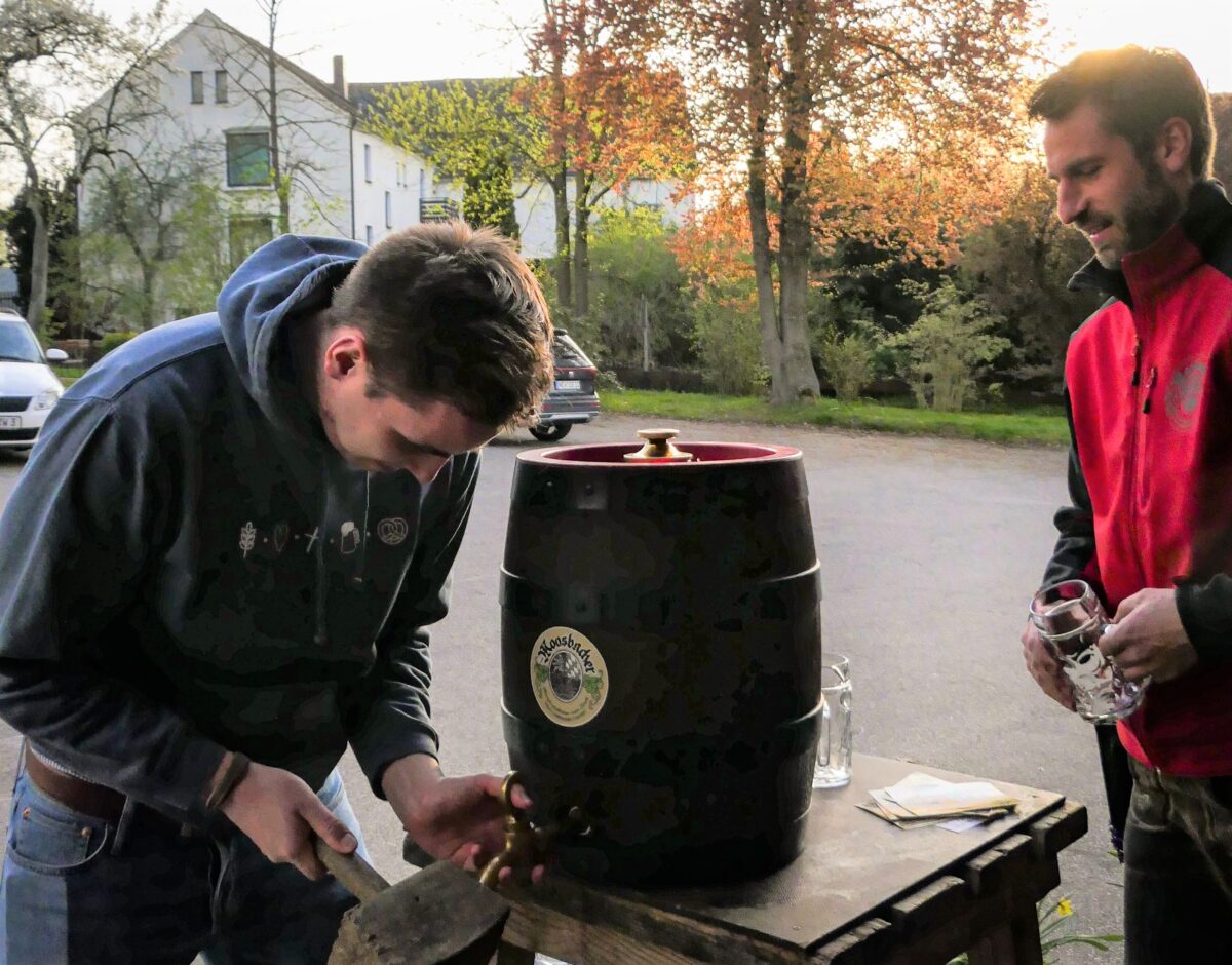 Schließlich schritt man zum Höhepunkt des Besuchs. Im Bräustüberl direkt neben der Brauerei erfolgte der Anstich eines Fass Festbieres, die ersten Züge waren noch etwas vorsichtig. „Schnell stellte sich hinsichtlich des zukünftigen Sommer-Wiesn-Festbieres ein regelrechtes Fest für den Gaumen ein“, so Griesbach, „ein süffiges Festbier aus dem Fass – mit dem Moosbacher Bier können wir unsere Gäste bei der zweitägigen Sommer Wiesn bestimmt begeistern“. Bei einer anschließenden großen Brotzeit für alle mitgereisten Mitglieder war sich die Waldthurner Landjugend schnell einig: „Des passt!“