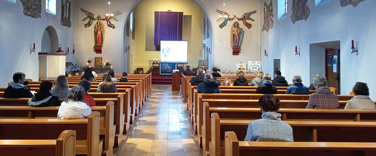 Rund 35 Gläubige nahmen am Sonntag, den 22. März, am ökumenischen Jugendkreuzweg in der Herz-Jesu-Kirche teil. Unter dem diesjährigen Leitwort „dahinter. Tiefer sehen, weiter gehen“ machten sich die Teilnehmerinnen und Teilnehmer gemeinsam auf einen besinnlichen Weg durch die Stationen des Kreuzwegs.