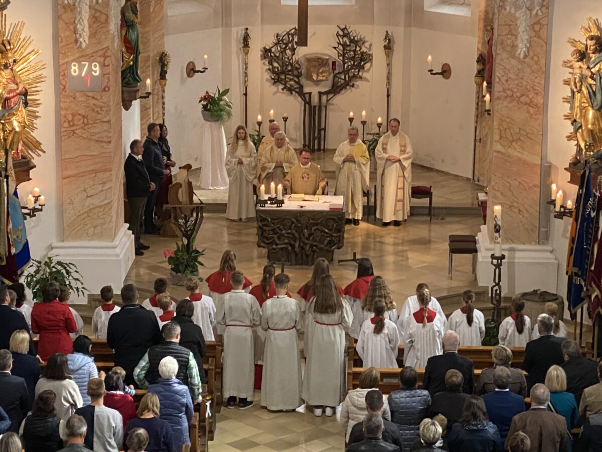 Bereits zu Beginn des Festgottesdienstes, zelebriert von Dekan Alexander Hösl in Konzelebration mit Regionaldekan Manfred Strigl, Pfarrer Wilhelm Bauer, Pfarrer Ronald Liesaus und Diakon Janusz Szubartowicz, würdigte und dankte er Pfarrer Bauer für die Verdienste seines priesterlichen Dienstes. 17 Ministranten und Gemeindeassistentin Elena Harwardt assistierten den Geistlichen beim Gottesdienst.
