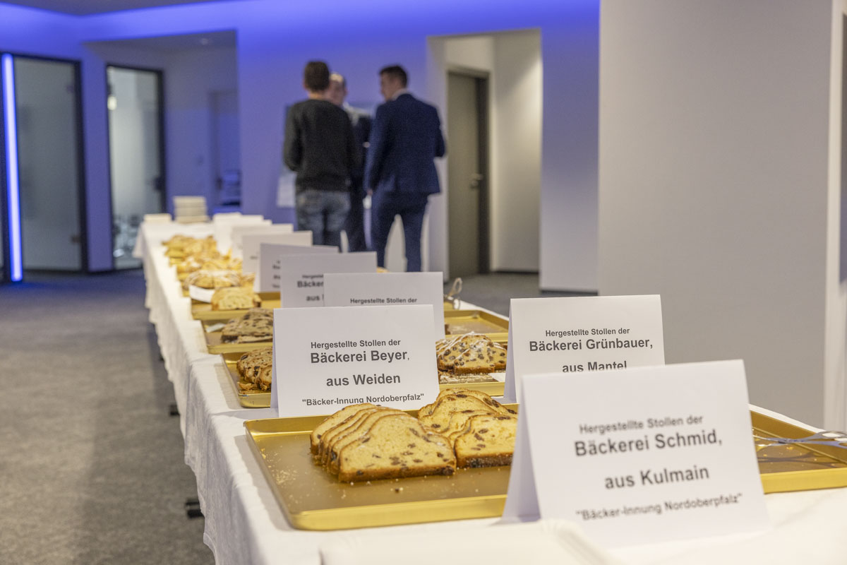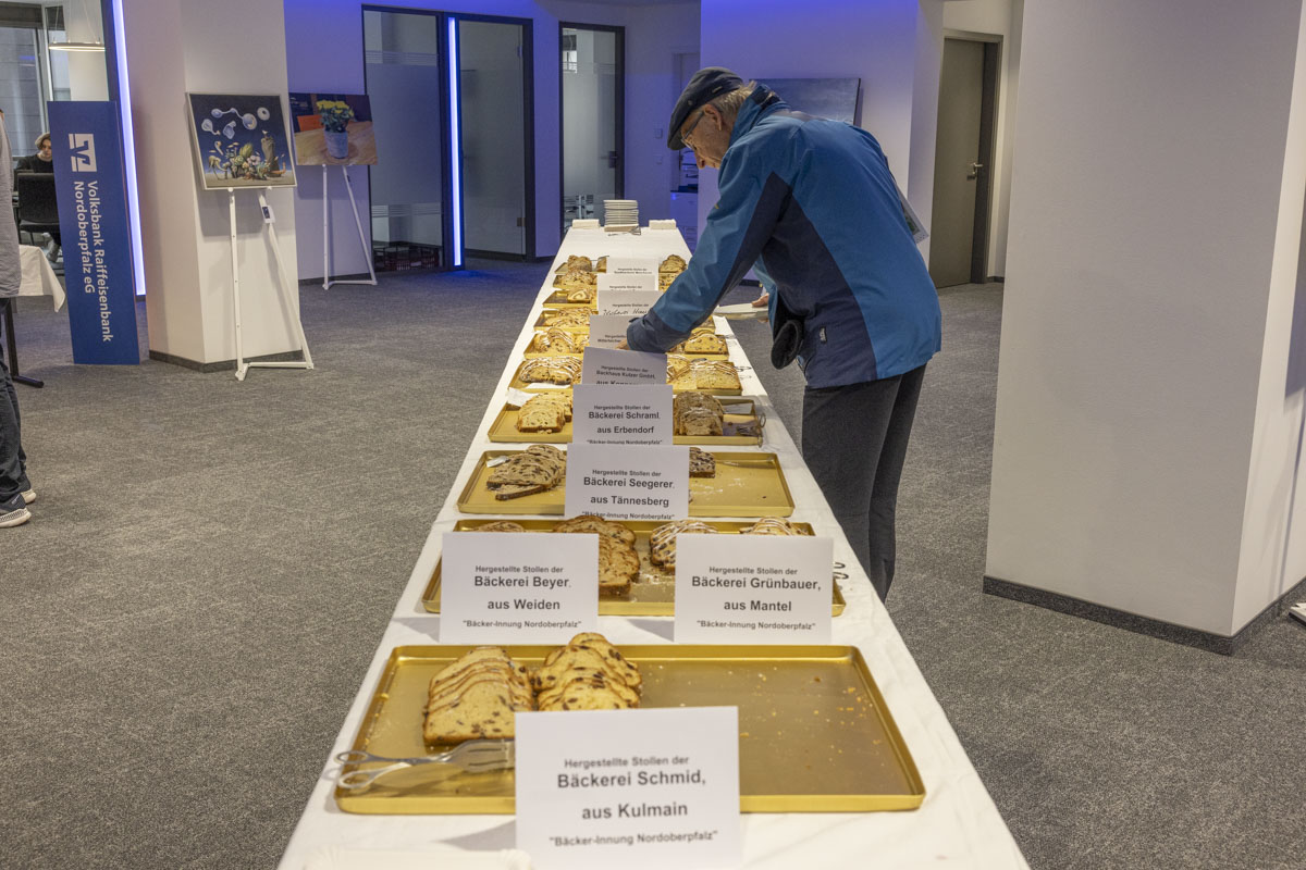 Der Obermeister der Bäckerinnung Nordoberpfalz Wolfgang Schmid war von der Vielfalt an unterschiedlichen Varianten begeistert. Neben den traditionellen Christ-, Butter- und Meisterstollen wurden nämlich auch moderne Kreationen wie Cranberry-, Orangen- oder Whiskeystollen getestet. Eine Vielfalt, die bei der Verköstigung in der Volksbank Nordoberpfalz Lust auf mehr machte.