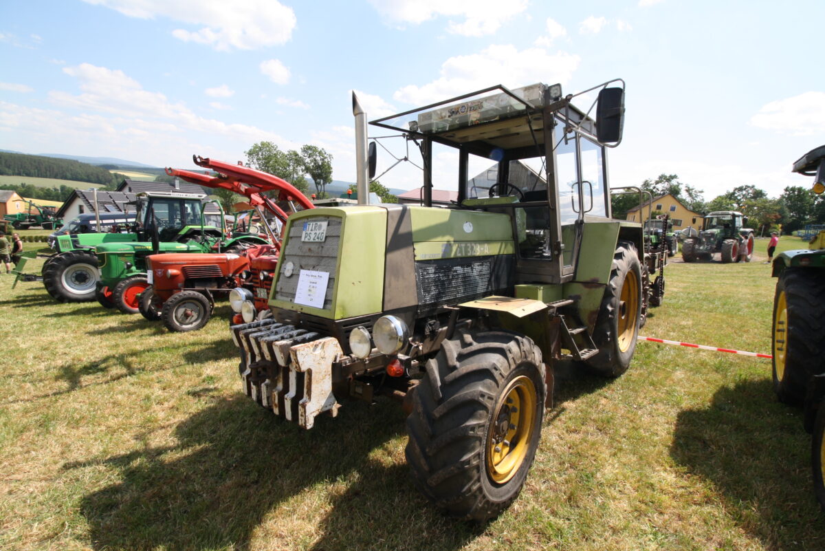 Und wer sagt, dass Oldtimertreffen „gestrig“ seien? In Feilersdorf rollte der Fortschritt ganz buchstäblich – in Gestalt eines „Fortschritt ZT 323 A“, der noch 1989, kurz vor der „Wende“ in Ostdeutschland, im „volkseigenen“ (staatlichen) Traktorenwerk Schönebeck bei Magdeburg vom Band gelaufen war. Nach der Wiedervereinigung zog der 100 PS starke DDR-Diesel in den „Westen“ nach Erbendorf um: ein robuster Zeuge deutsch-deutscher Geschichte.