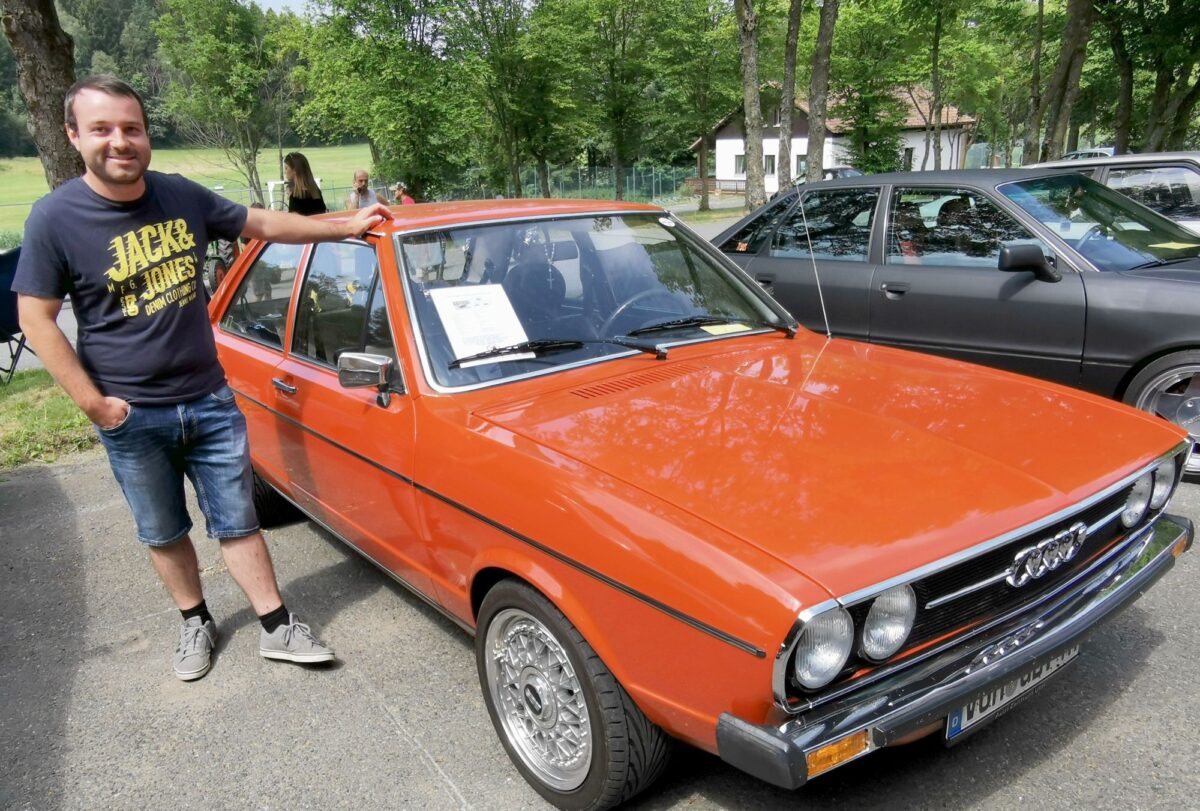 Die Oldtimerfreunde kamen aus Tirschenreuth, Weiden und den Nachbargemeinden. Als Eslarner hatte der leidenschaftliche Oldtimerfreund Tobias Ziegler mit seinem Oldie der Marke Audi 80 B1 GL, Baujahr 1974, die kürzeste Fahrt zum Atzmannsee. Die Farbe „Orange-Koralle“ des 85-PS-starken Audis fiel bereits von Weitem auf.